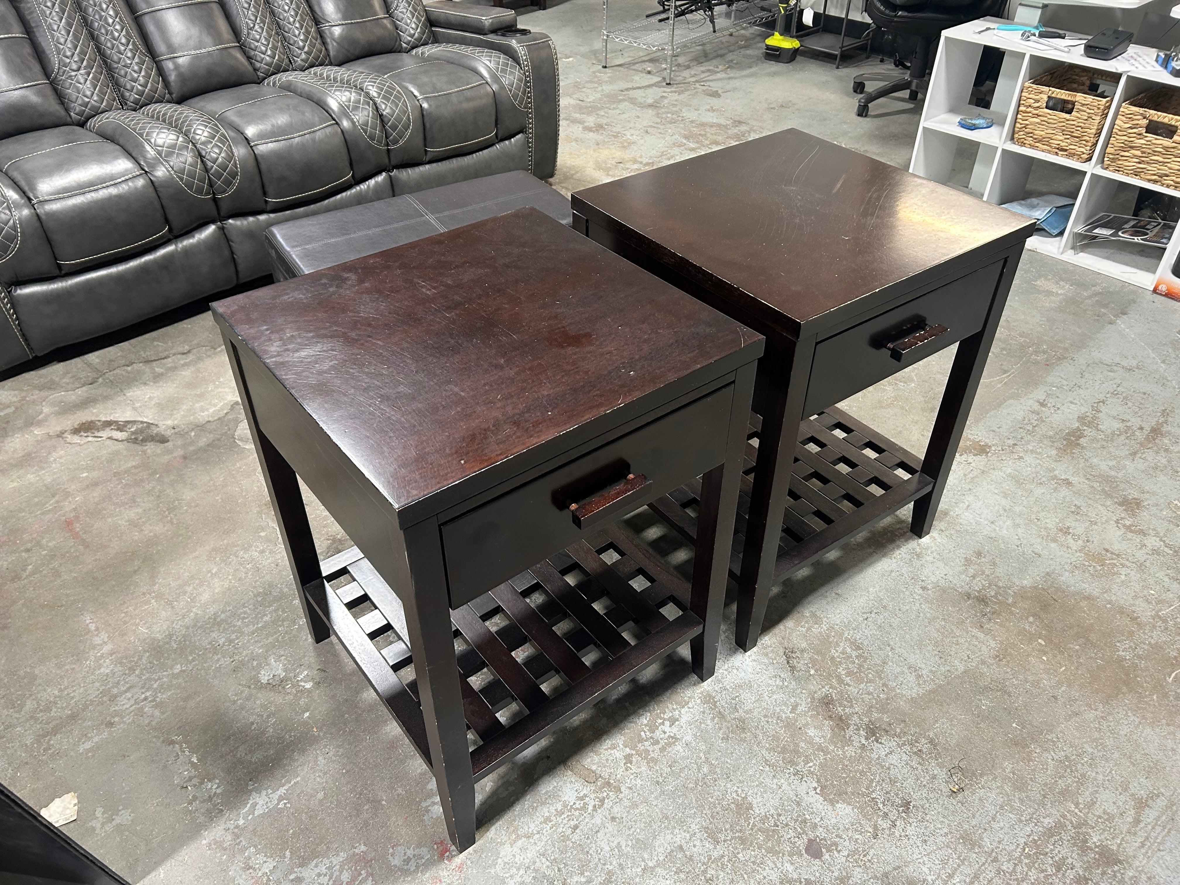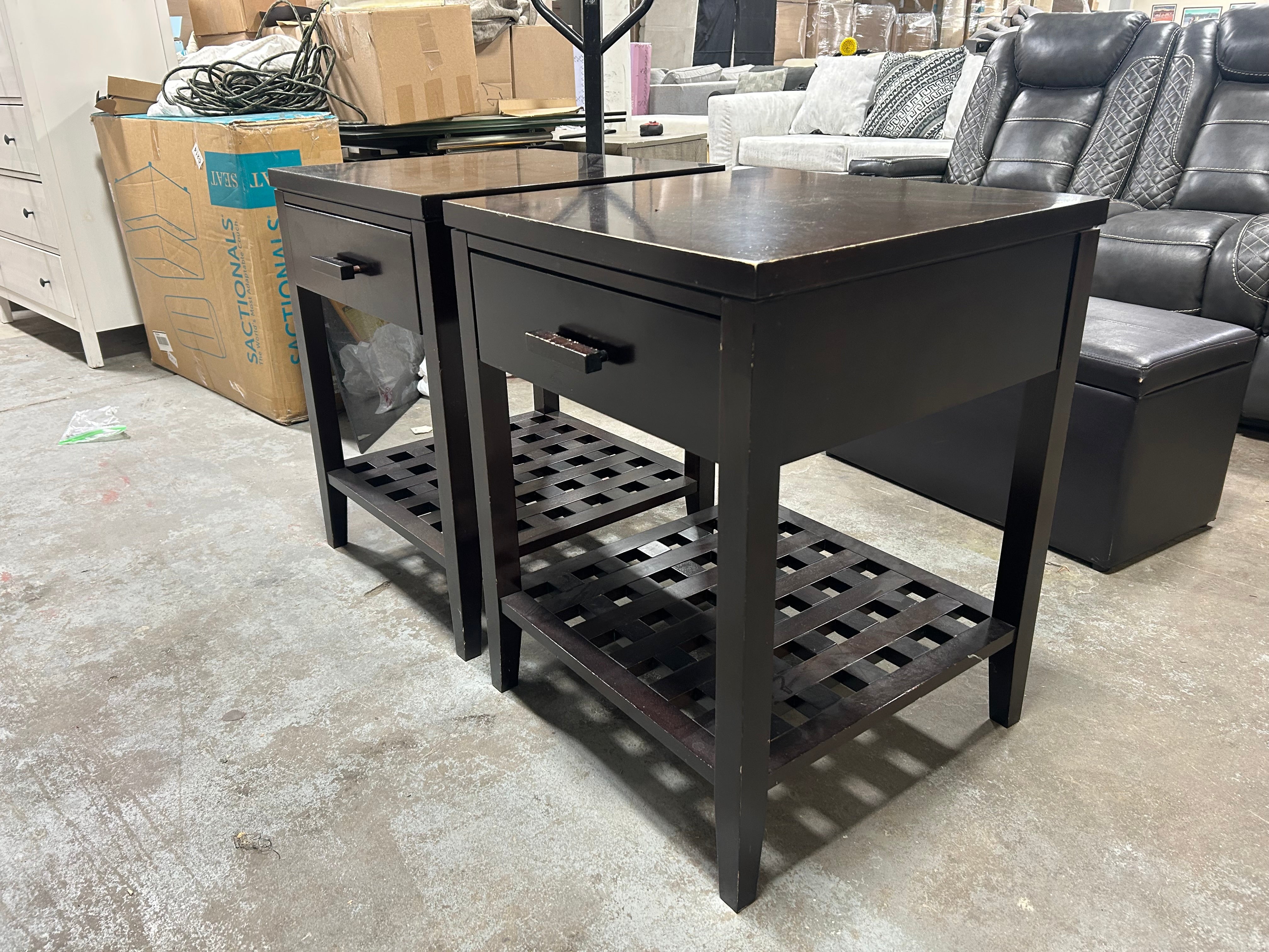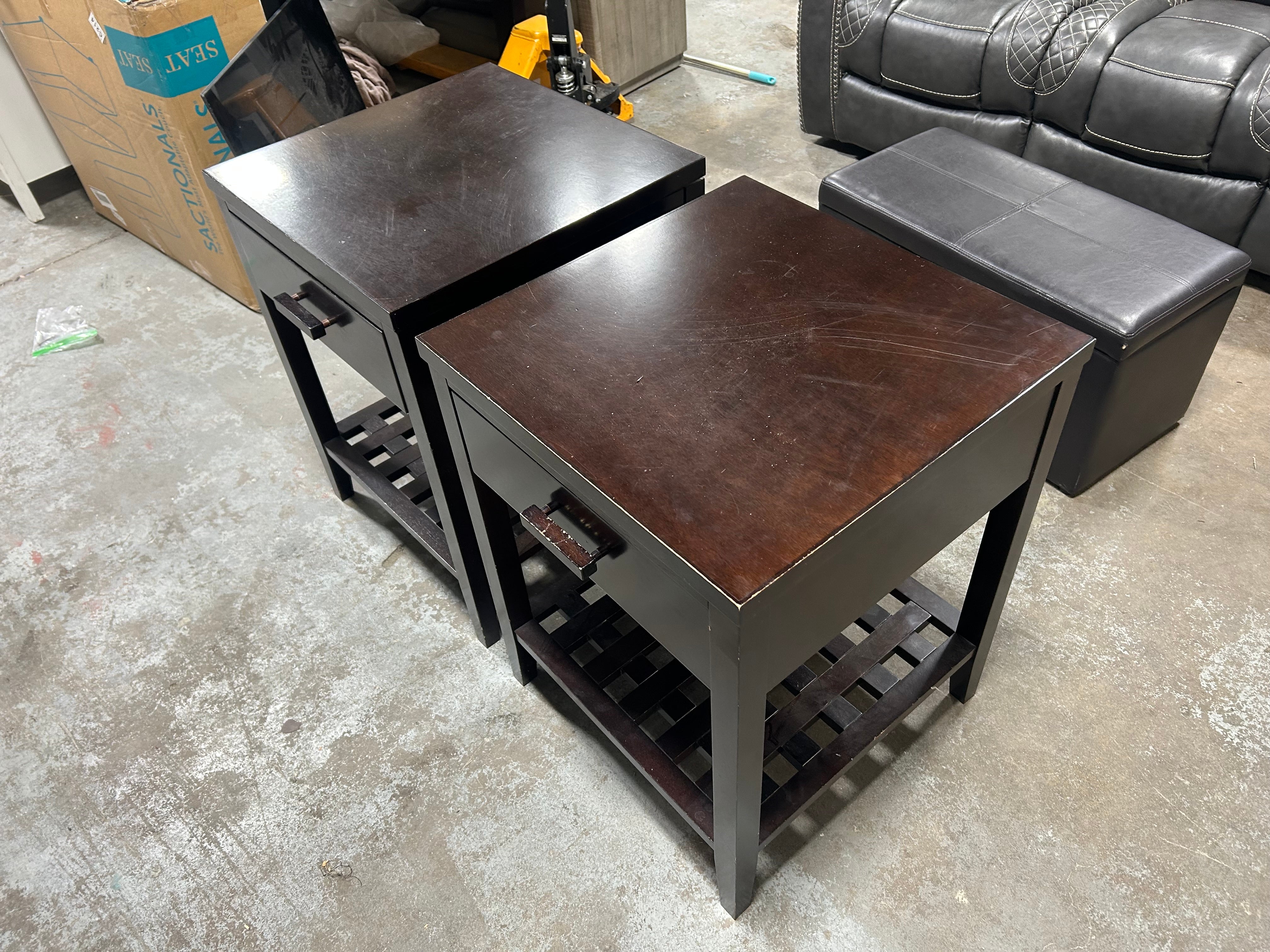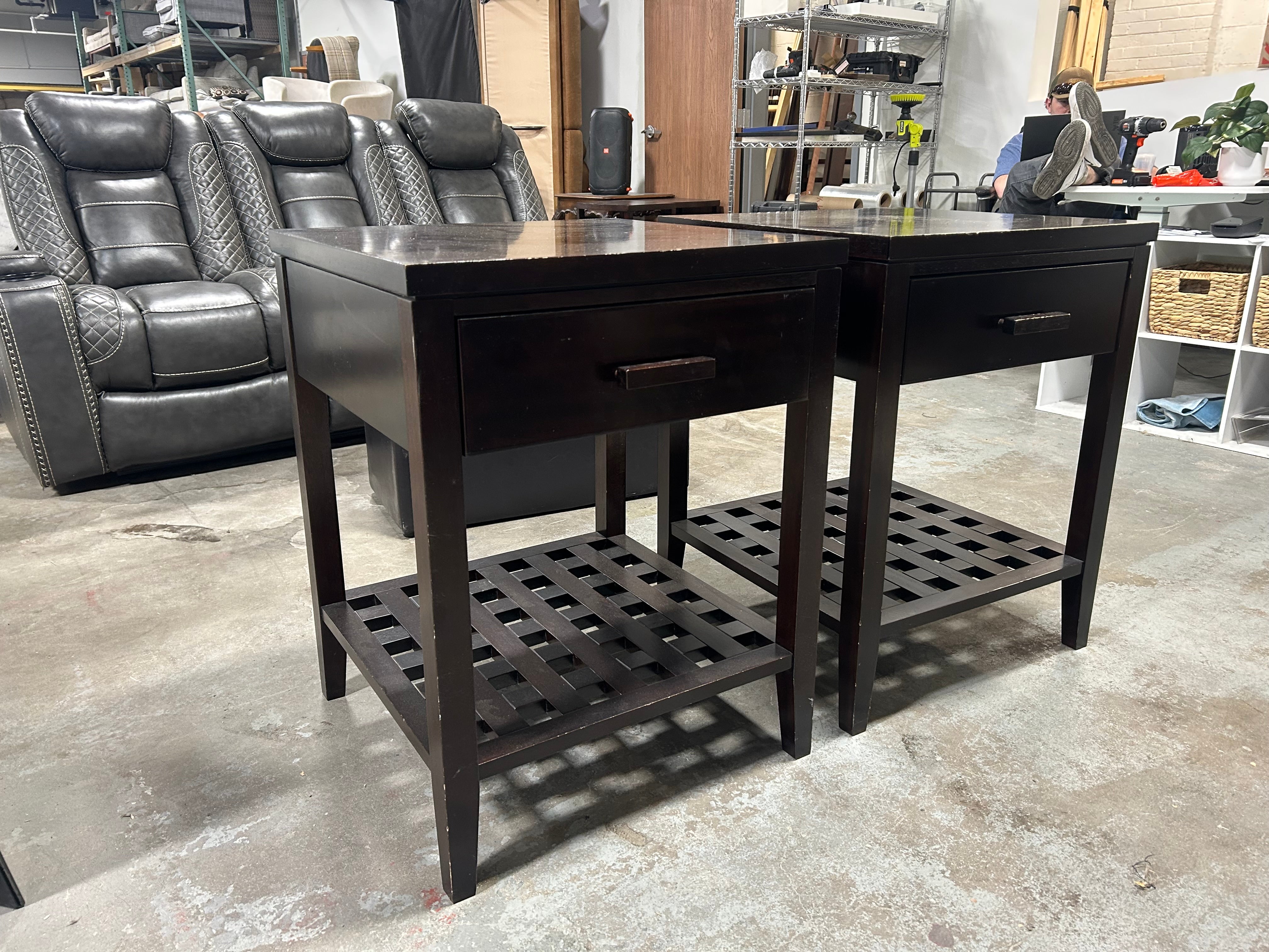 Introducing our Ligna Furniture Nightstands in a rich, dark brown color! These nightstands measure 22” x 22” x 29”, making them the perfect addition to any bedroom. With two spacious drawers, these nightstands offer ample storage for all your bedtime essentials. The sturdy construction and timeless design make these nightstands a great investment for your home. Don't miss out on this great deal!