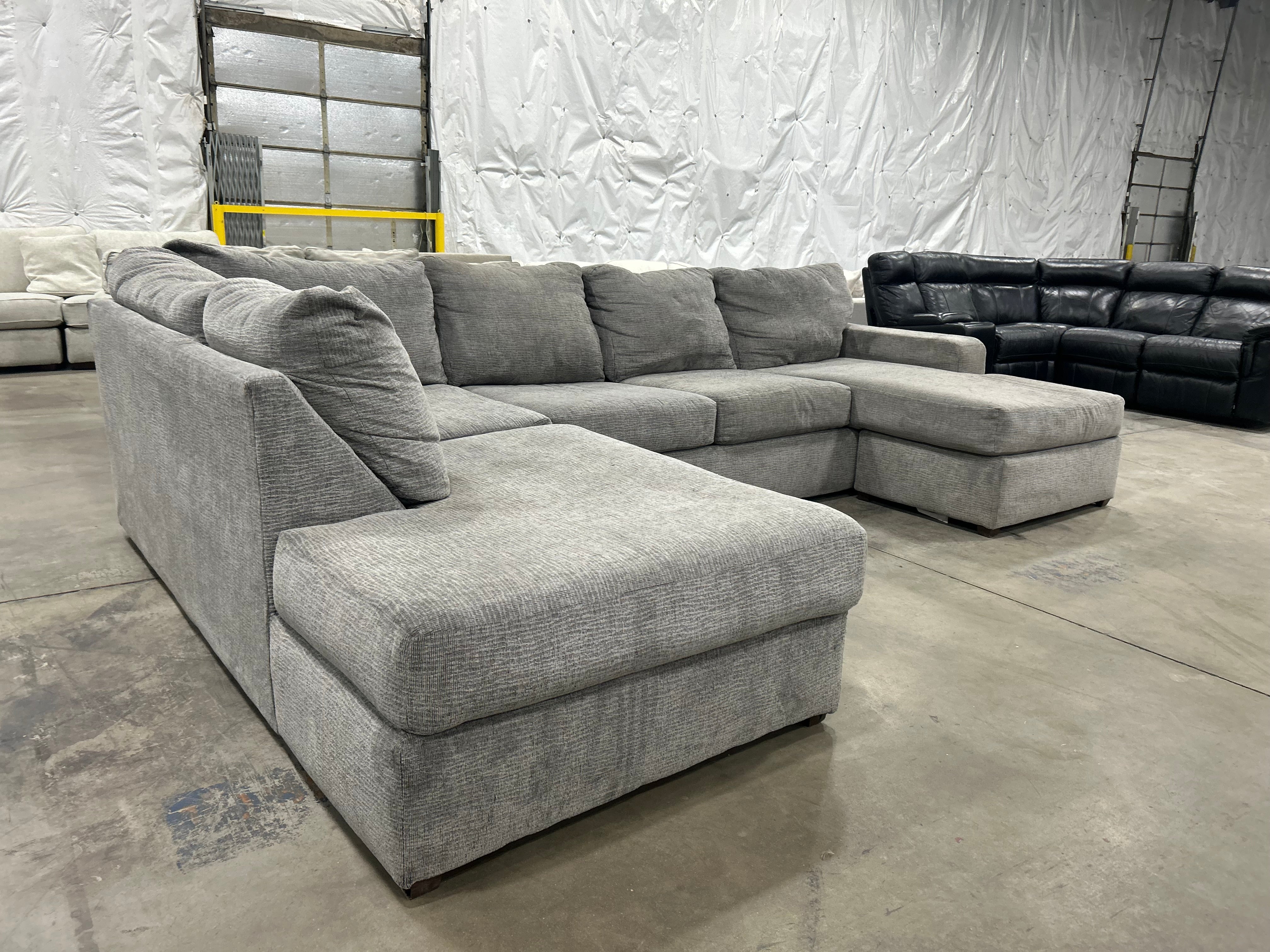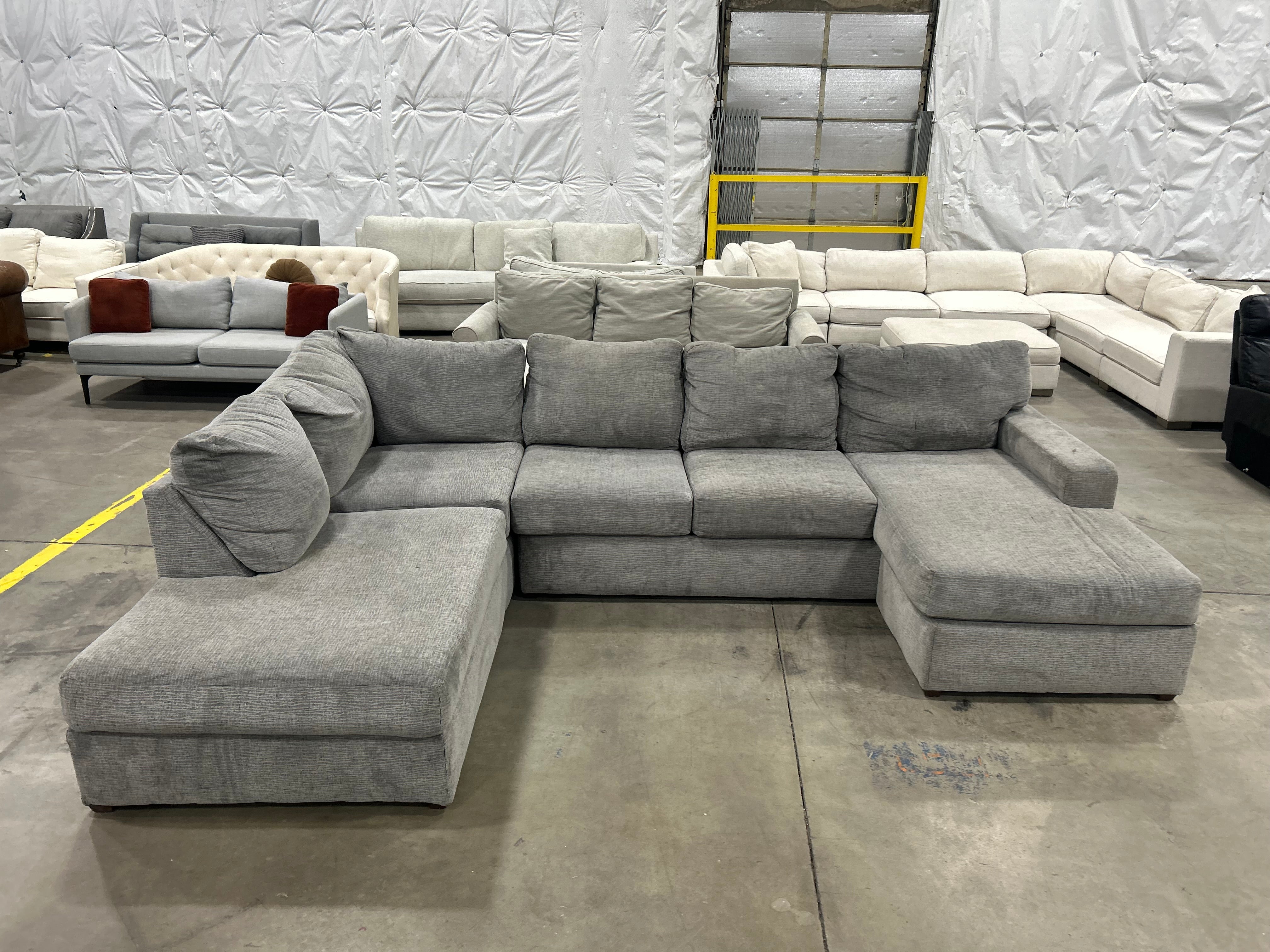 Upgrade your living space with our Gray U-Shaped Sectional. This elegant piece of furniture, flaunting a sophisticated gray color, is perfect to add a touch of class and comfort to your home. Measuring 131” x 90” x 29”, it is designed to provide ample seating space, making it ideal for hosting guests or spending quality time with family. Its U-shaped design encourages conversation and ensures everyone has the best seat in the house. We are Instant Offer Furniture, Denver's largest used furniture store located at 14101 E 33rd Pl, Suite A. Open M-F 9am-5pm and Sat 11am-2pm. Search “Instant Offer Furniture LLC” on Facebook and join our group for exclusive access to our curated, ever-changing inventory. Visit our website www.instantofferfurniture.com. *Prices exclude sales tax*