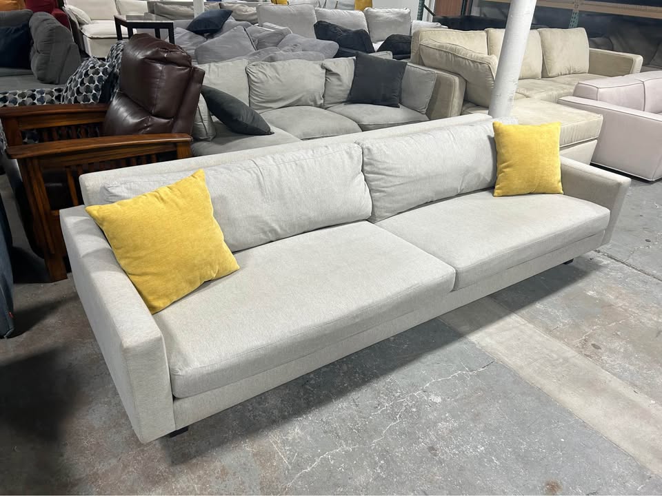 Introducing our stunning American Leather Light Gray Sofa, the perfect addition to any living room! This modern and sleek sofa features a light gray color that will complement any decor. Measuring 102”x39”x27”, it provides ample seating space for you and your loved ones. Not to mention, the down-filled cushions make for the ultimate comfort experience.