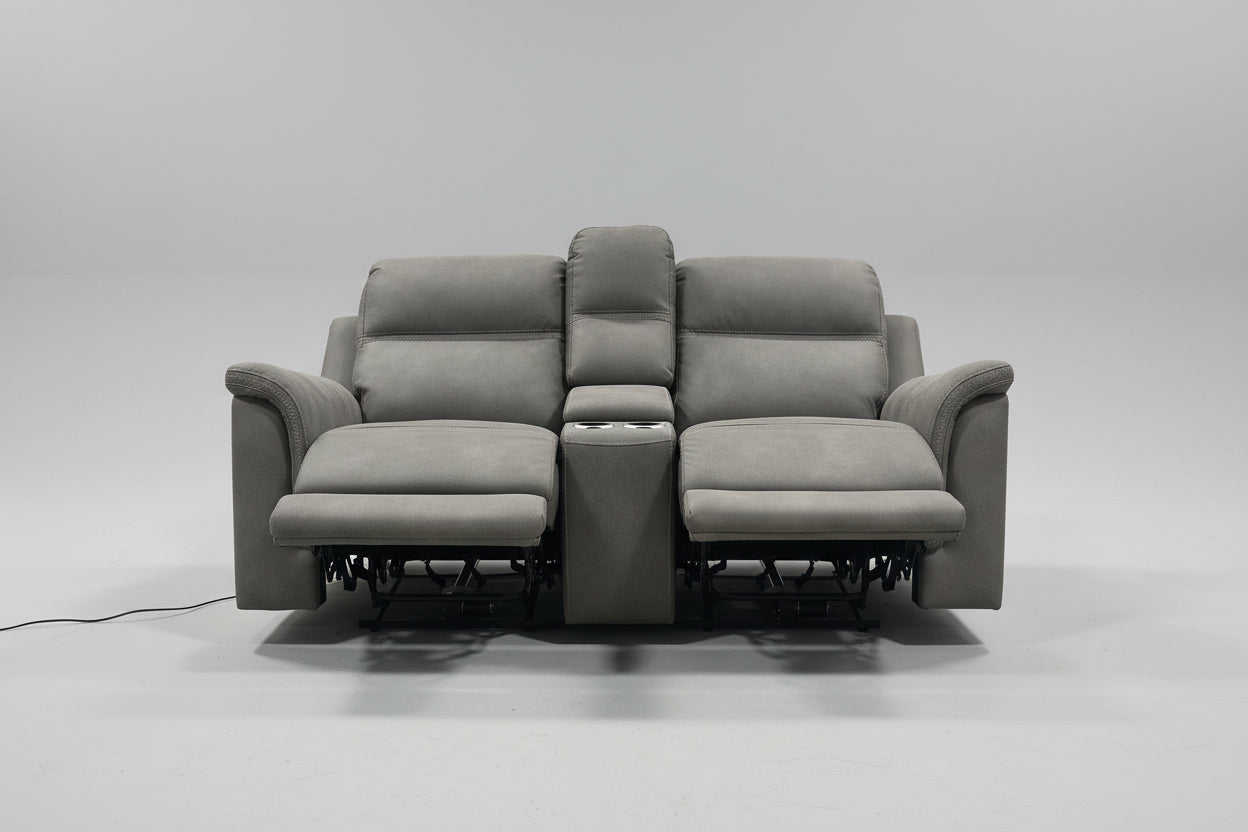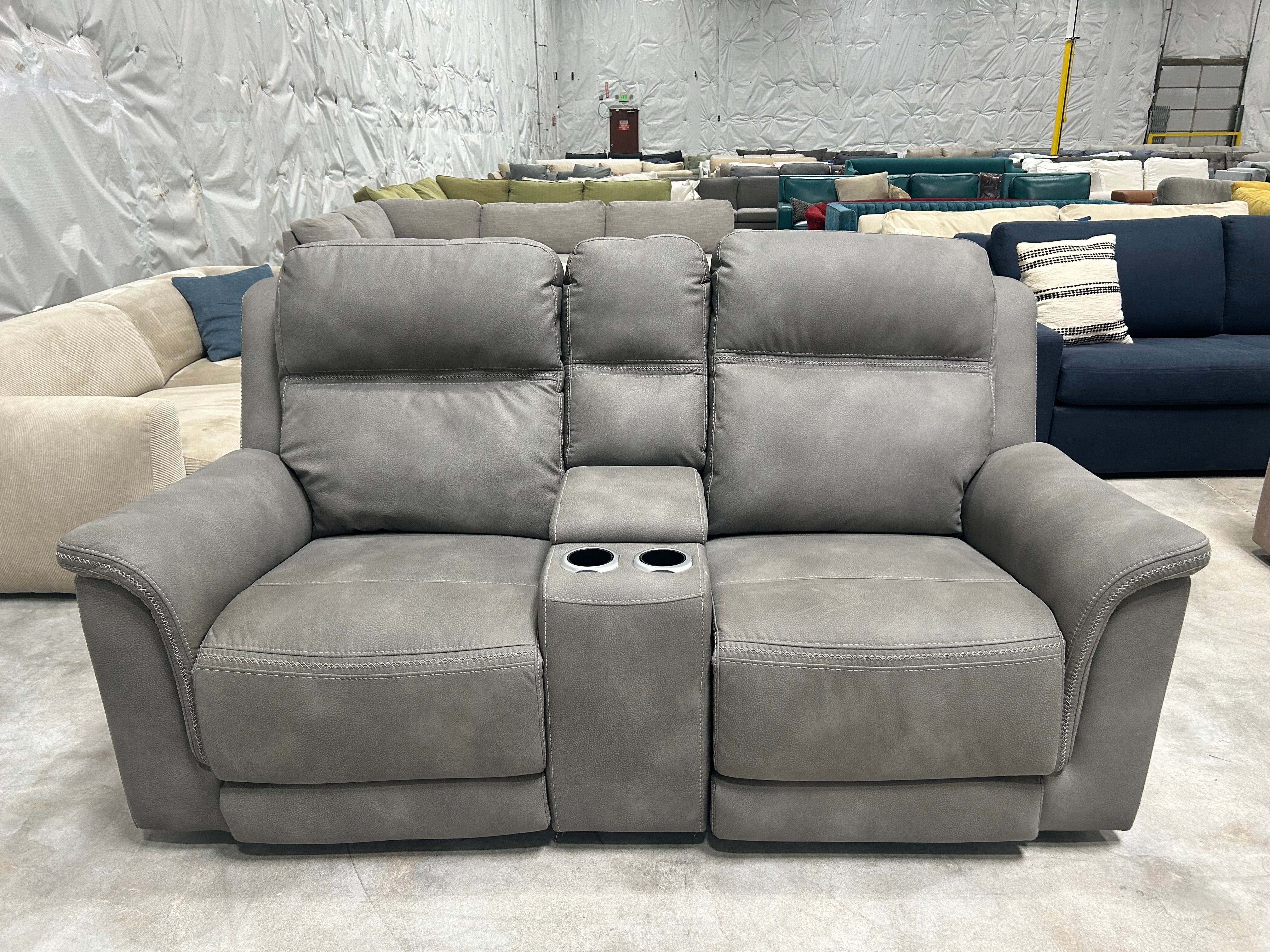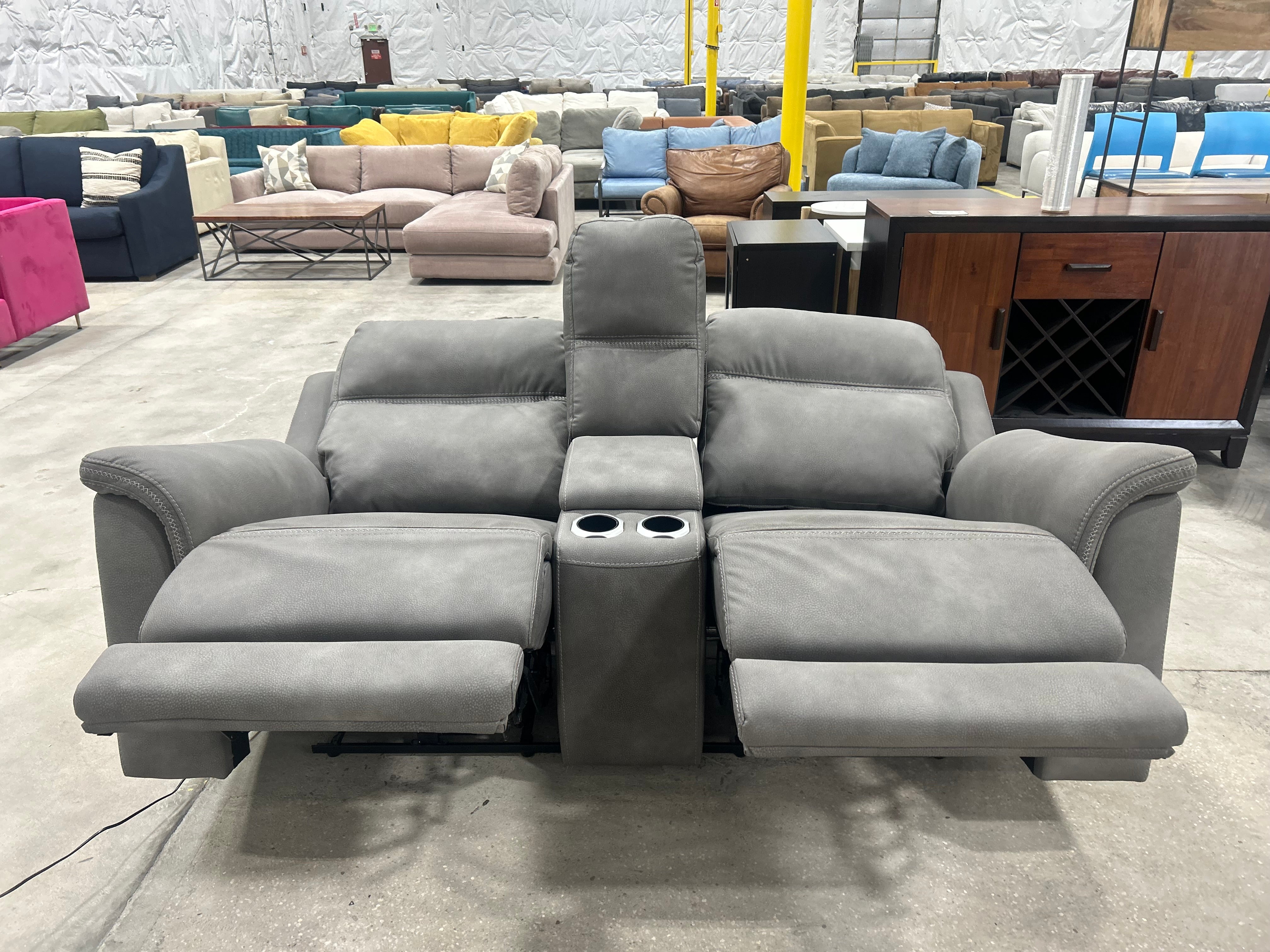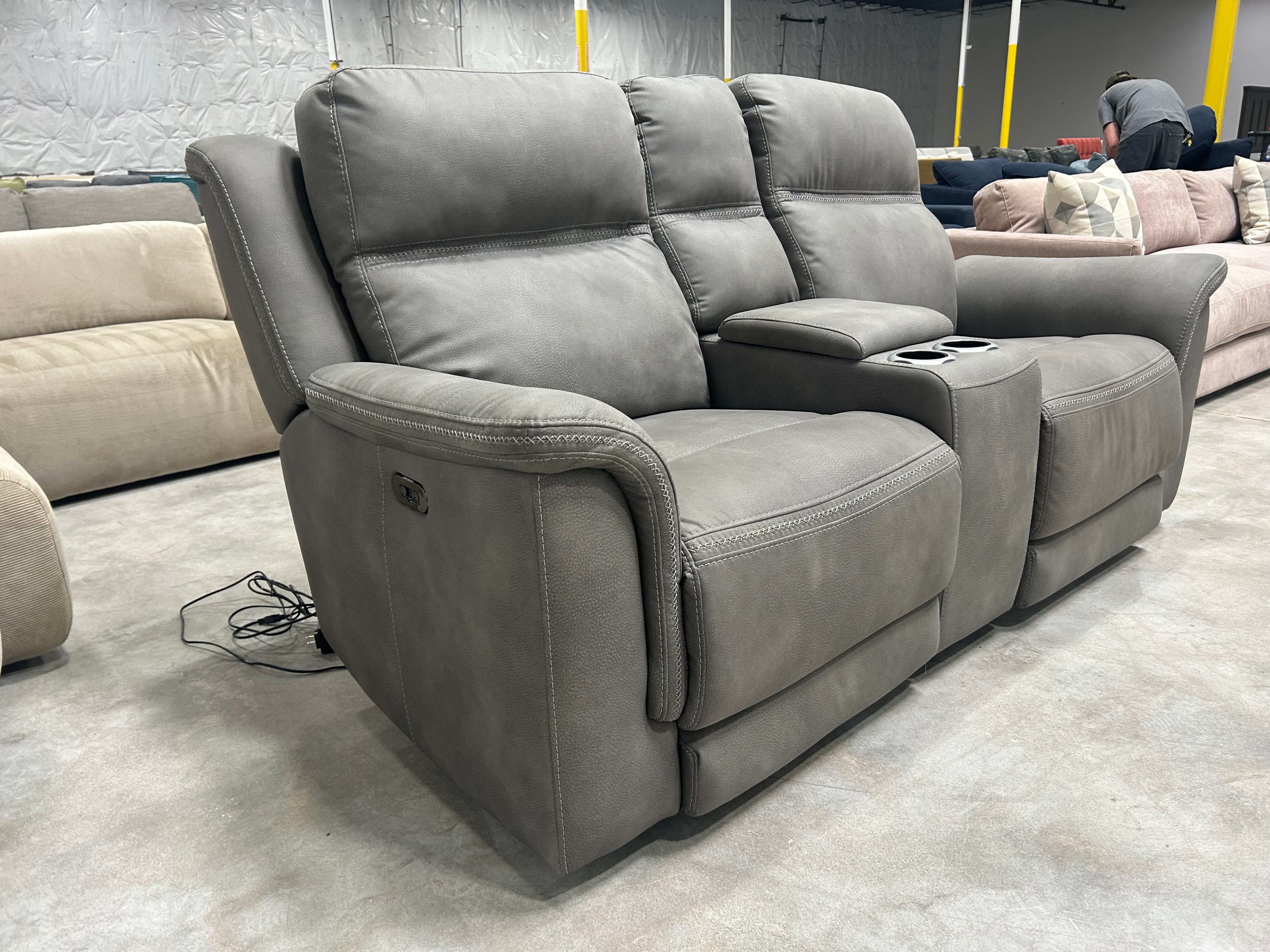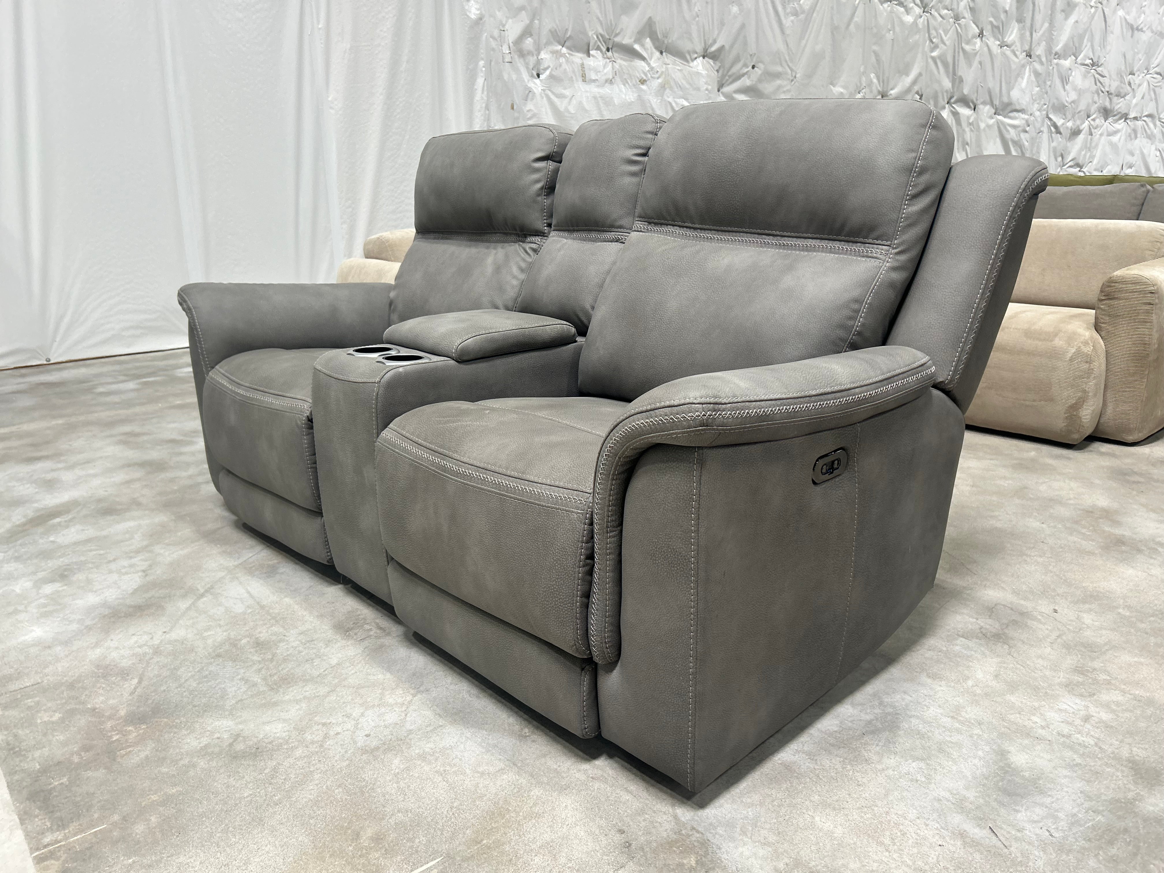 Gray Microsuede Power Recliner Sofa