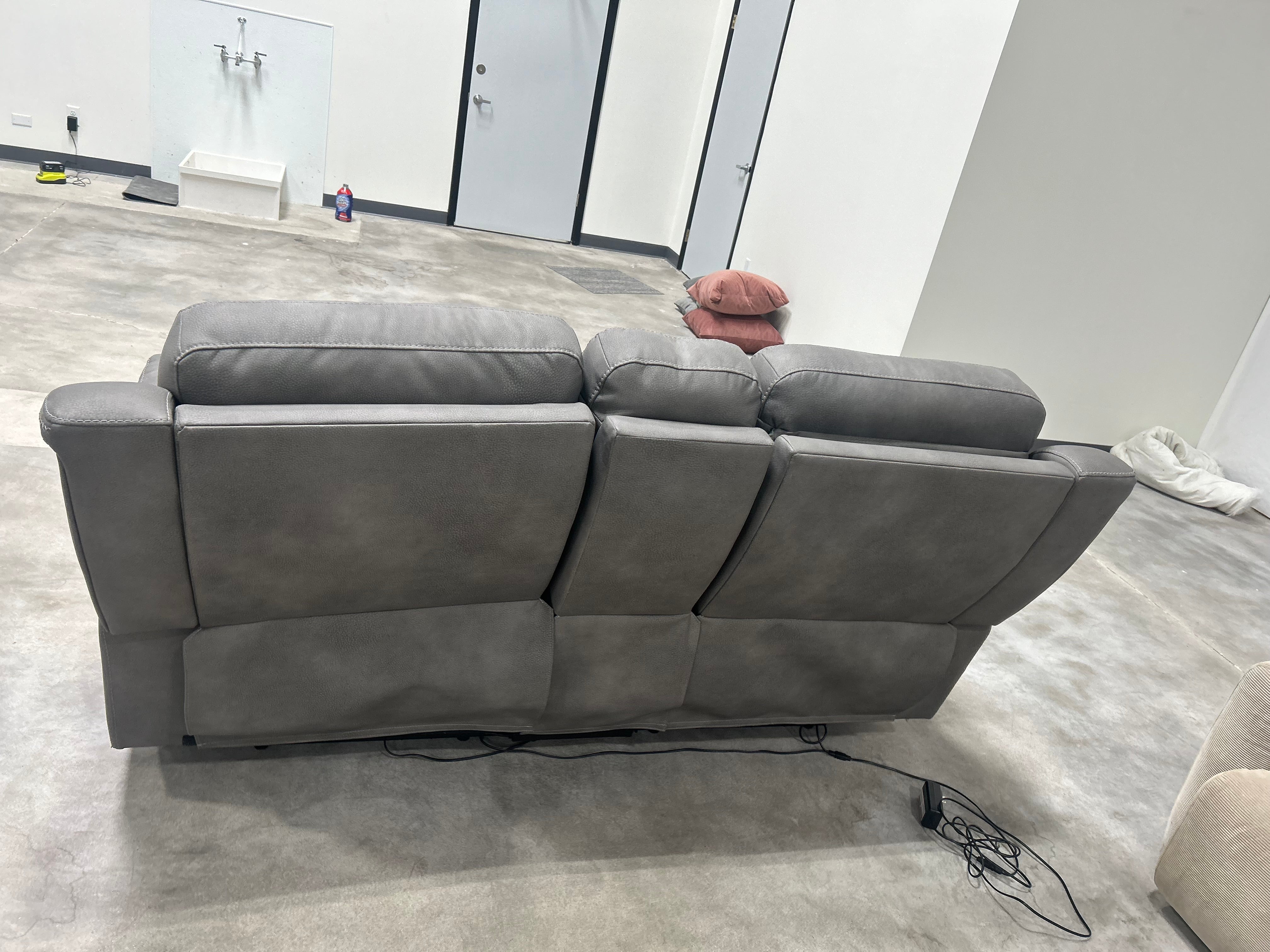 For sale is a stunning Gray Microsuede Power Recliner Sofa that will add elegance to any space. The sofa is a beautiful stone gray color that can seamlessly blend with different decor styles. It is generously sized at 77” x 41” x 38” making it the perfect piece to relax on after a long day. The recliner function adds to its versatility, allowing you to kick back and unwind in comfort. This high-quality piece has been well cared for and is in excellent condition. Its timeless design and durable microsuede upholstery ensure it will remain a staple in your home for years to come.