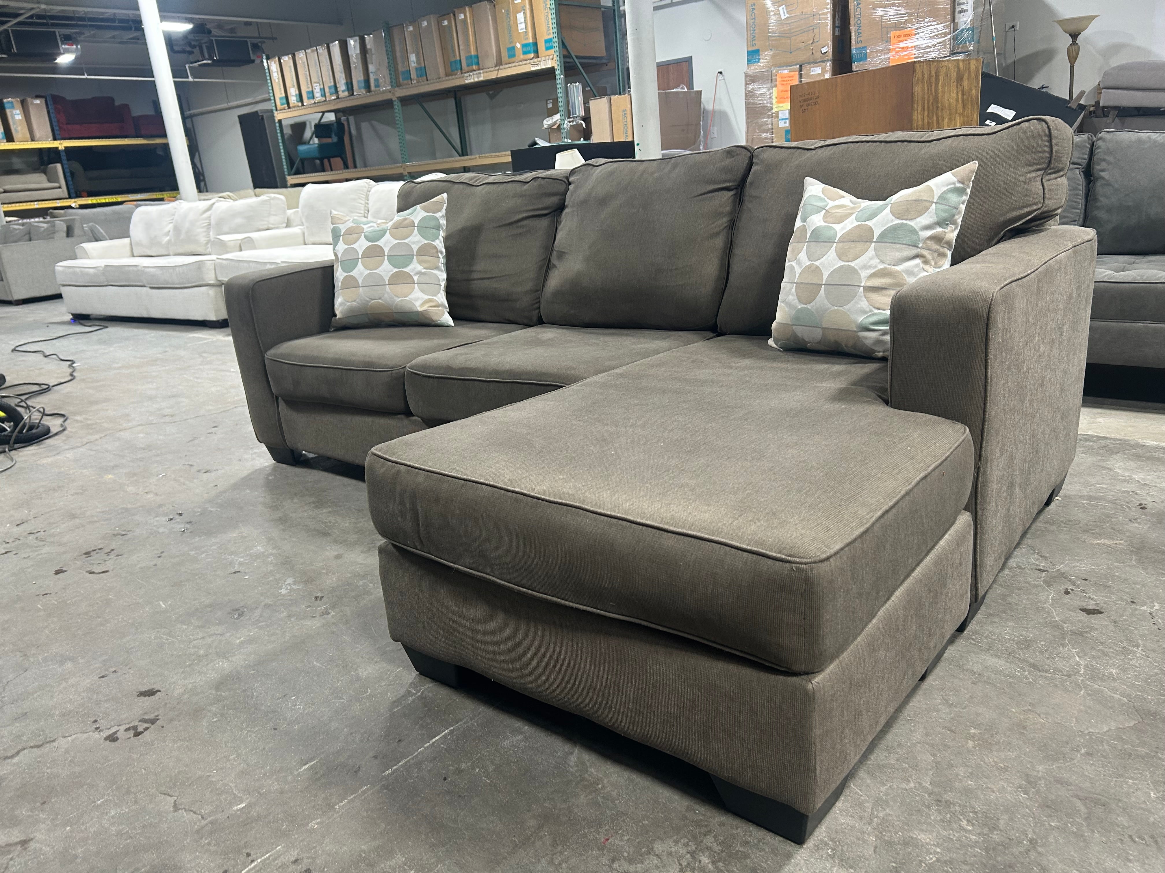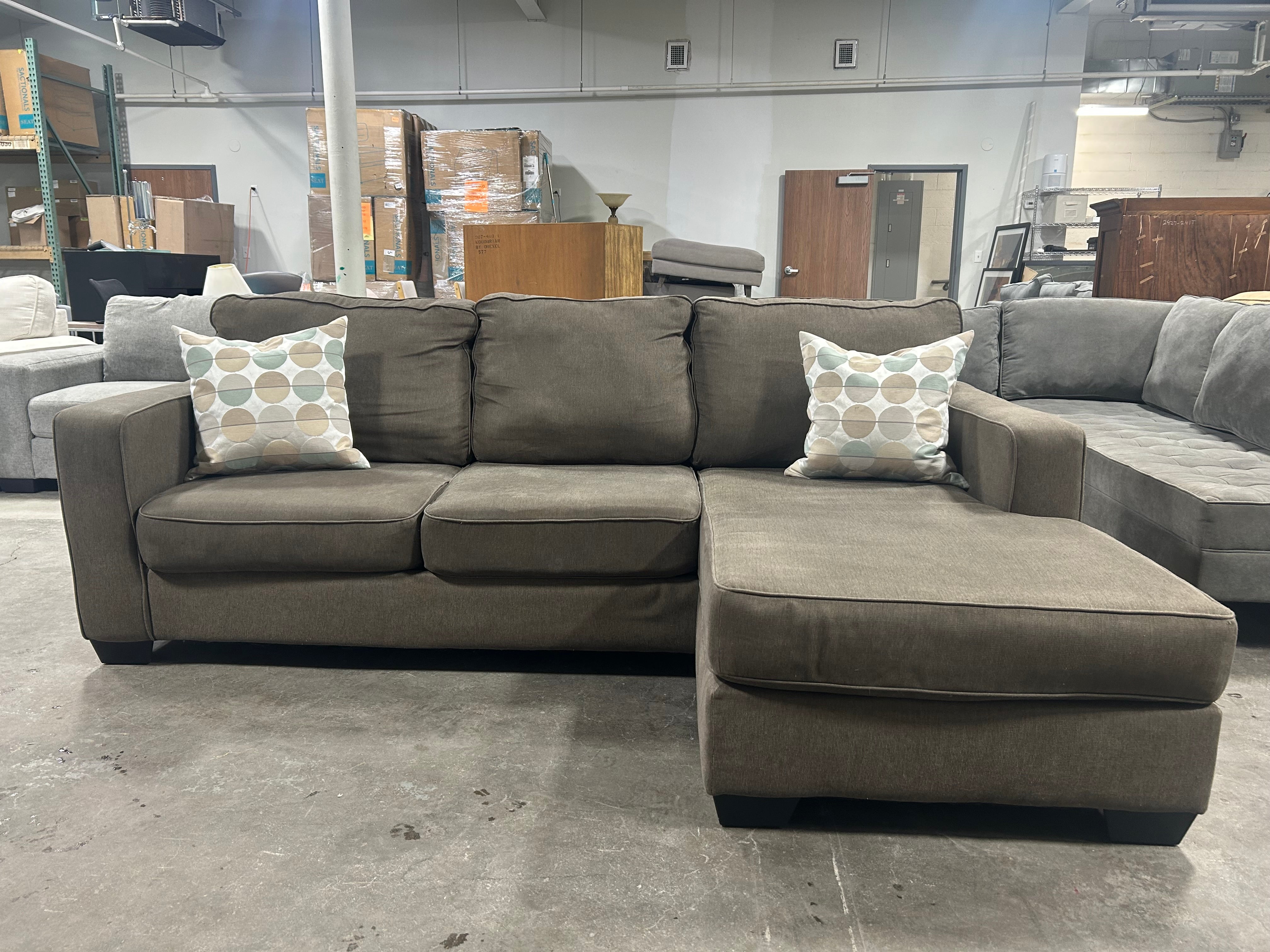 "Looking for the perfect addition to your living room? Check out our EXCELLENT condition Contemporary Taupe Reversible Chaise Sectional! This versatile piece offers a reversible chaise, making it perfect for any room layout. The neutral taupe color will easily complement any decor style. With dimensions of 92”x64”x38”x31”, this sectional is both spacious and cozy. Whether you're entertaining guests or lounging with your family, this sectional has got you covered.