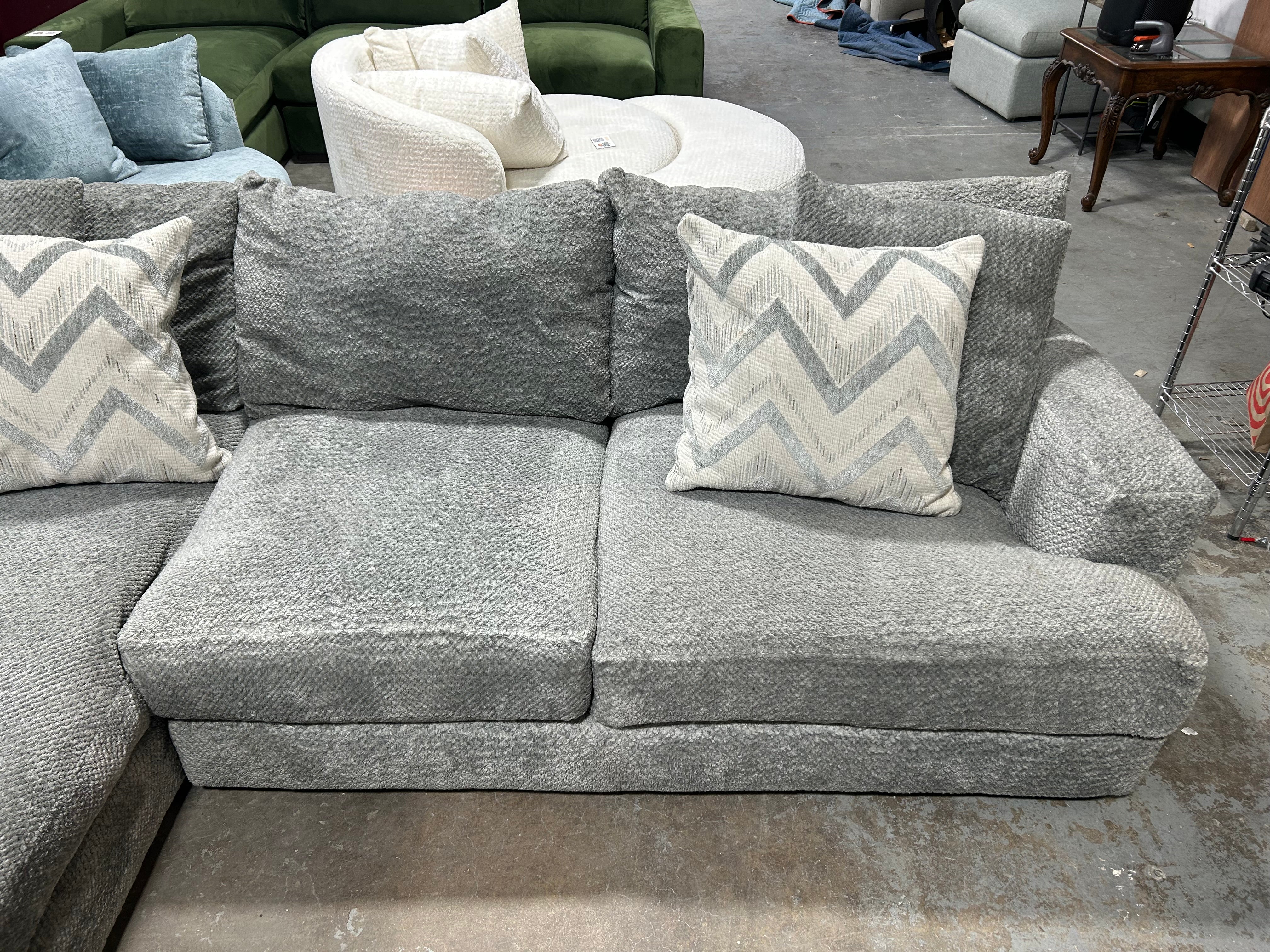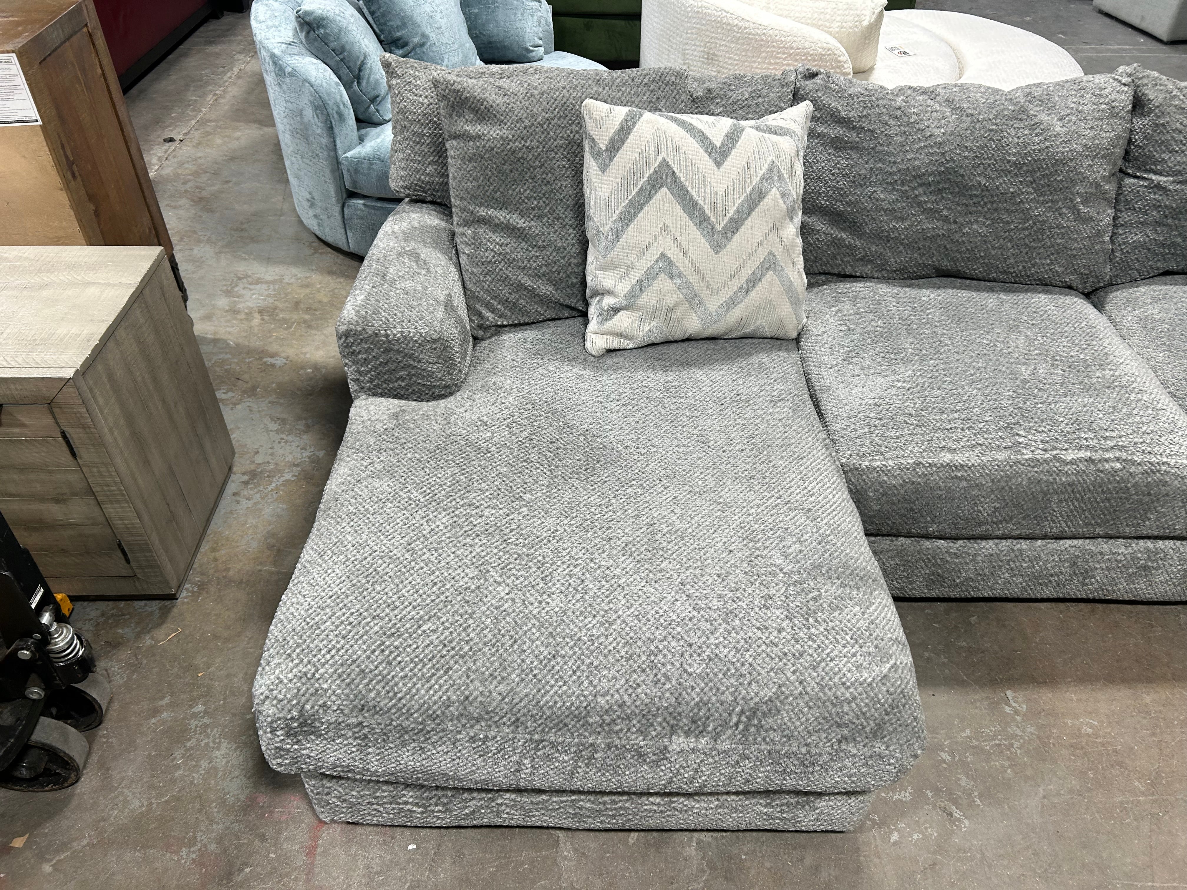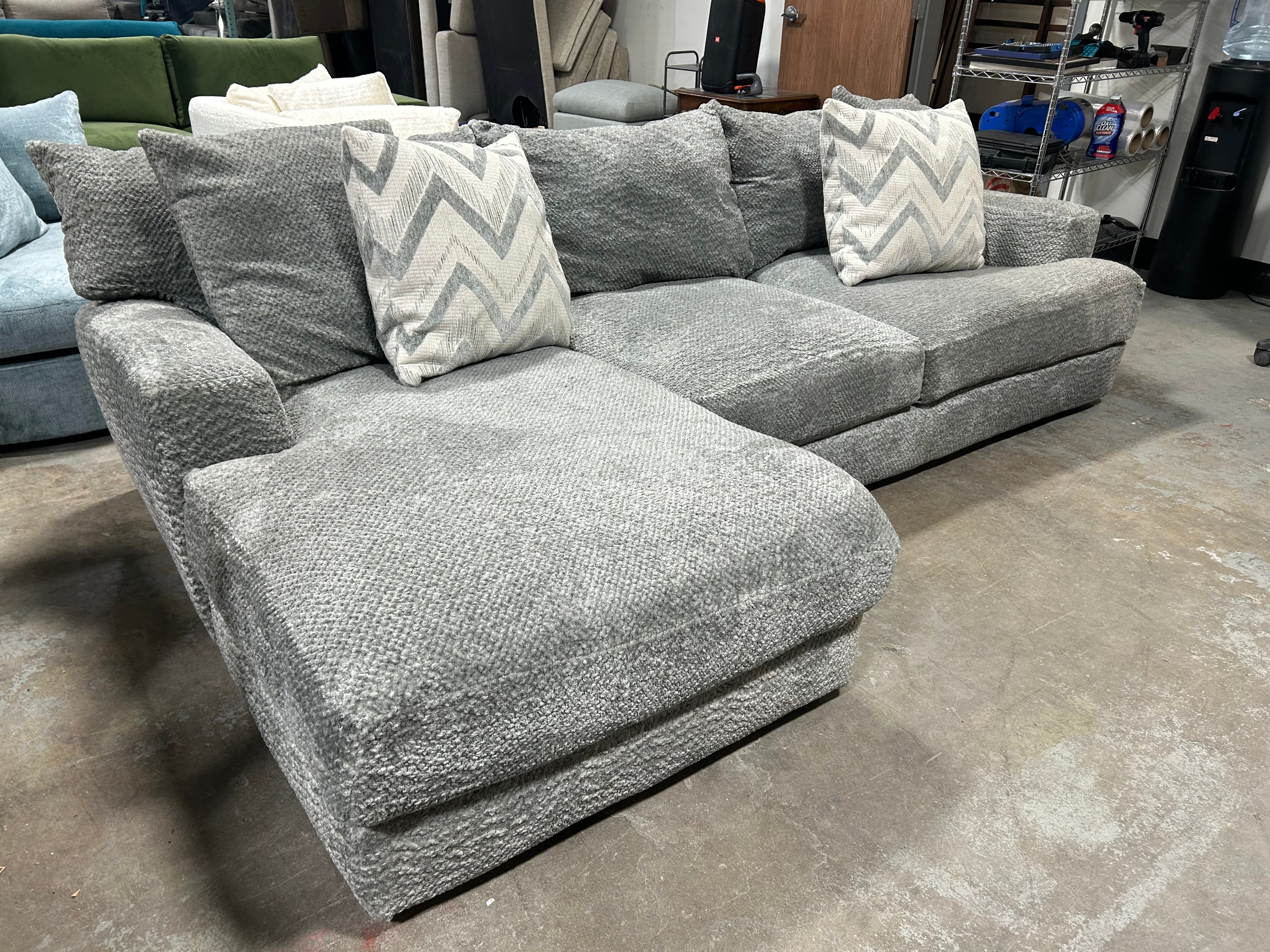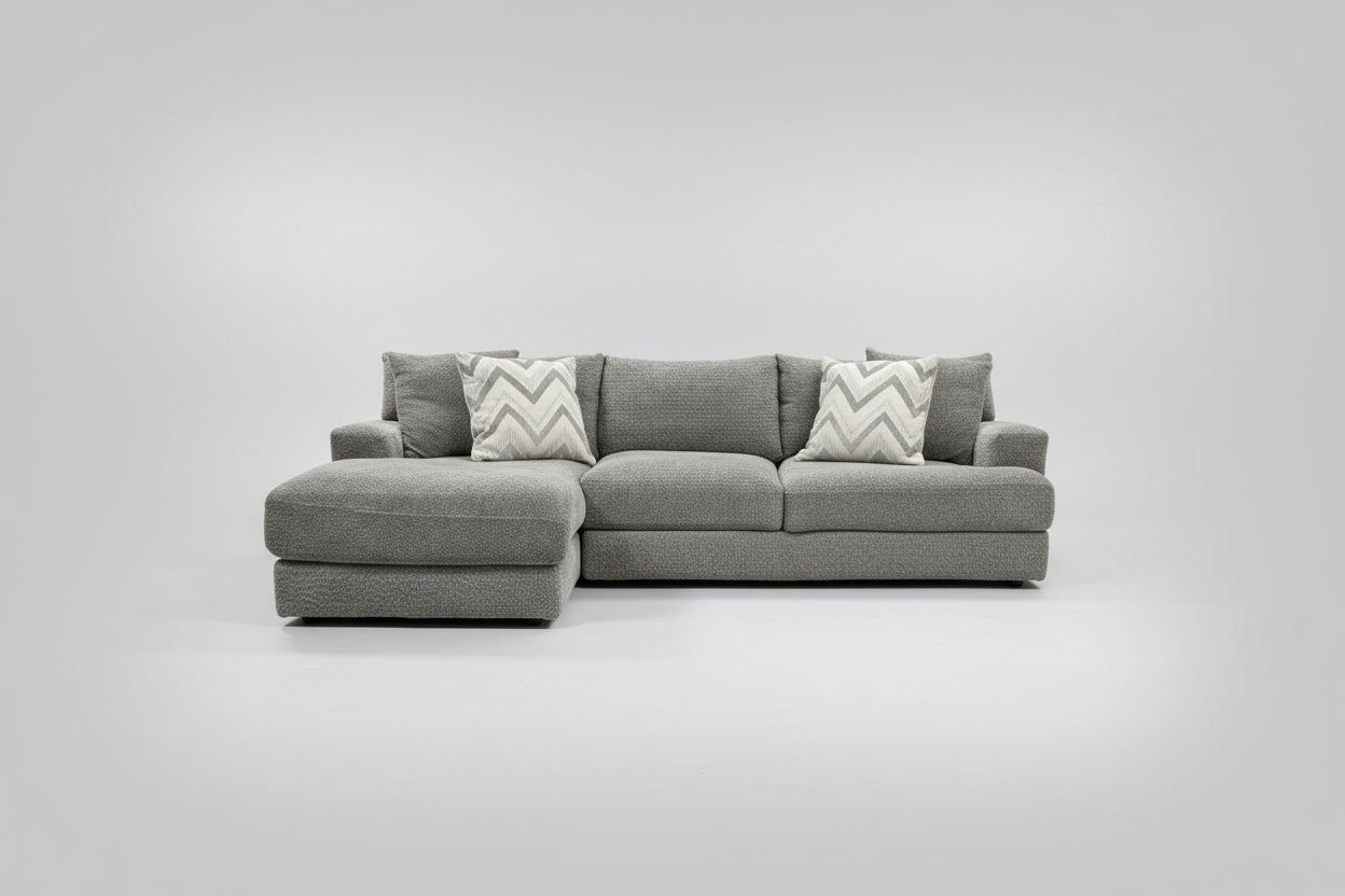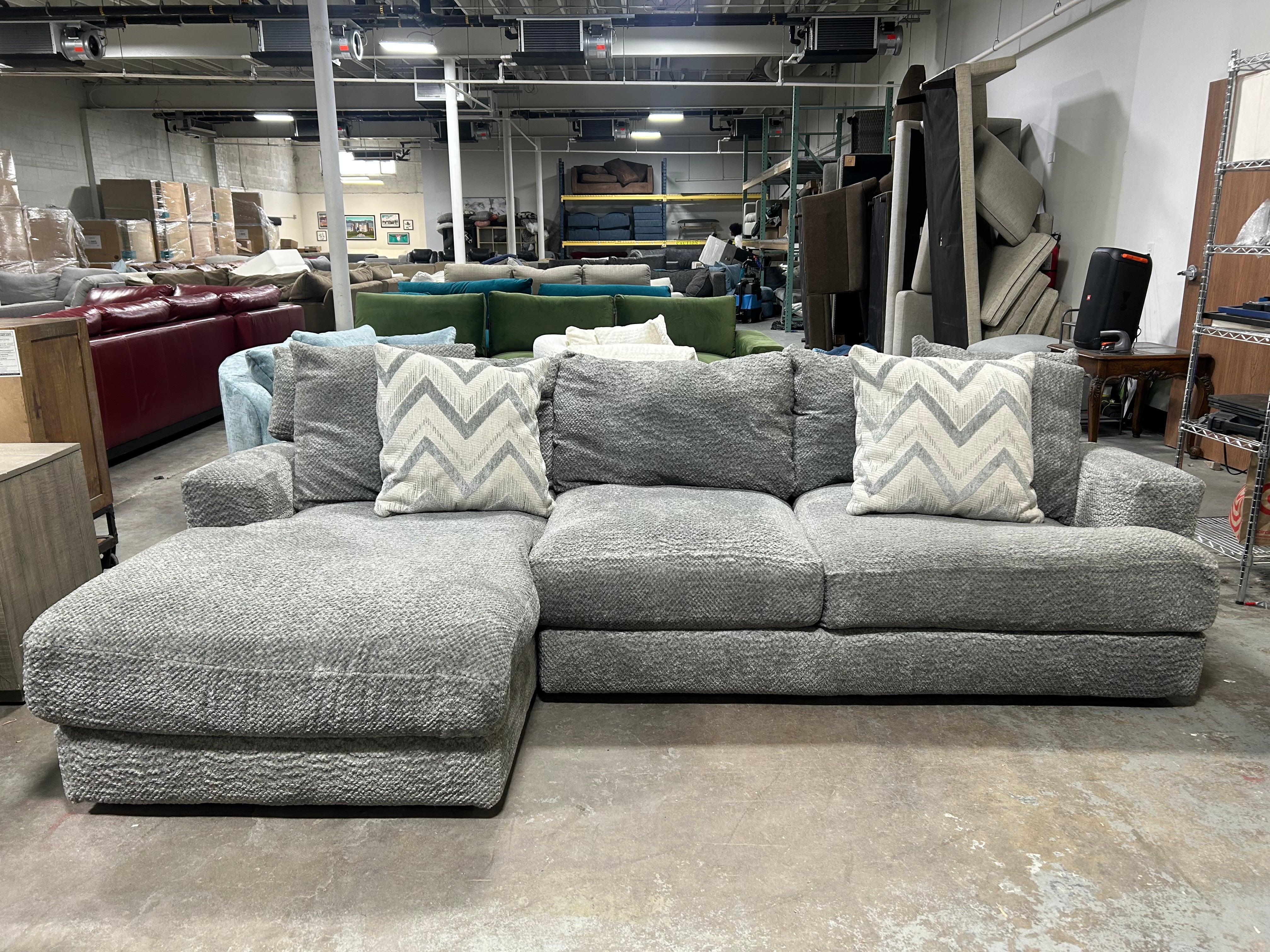 Looking for a cozy and stylish addition to your living room? Look no further! Our ULTRA PLUSH Gray Sectional with Chaise is the perfect fit. The sleek gray color will complement any decor and the dimensions of 108” x 66” x 26” make it the ideal size for any space. But what sets this sectional apart is its plushness. Sink into the soft cushions and relax after a long day. The chaise adds an extra level of comfort and is perfect for lounging or napping. Pillows included.