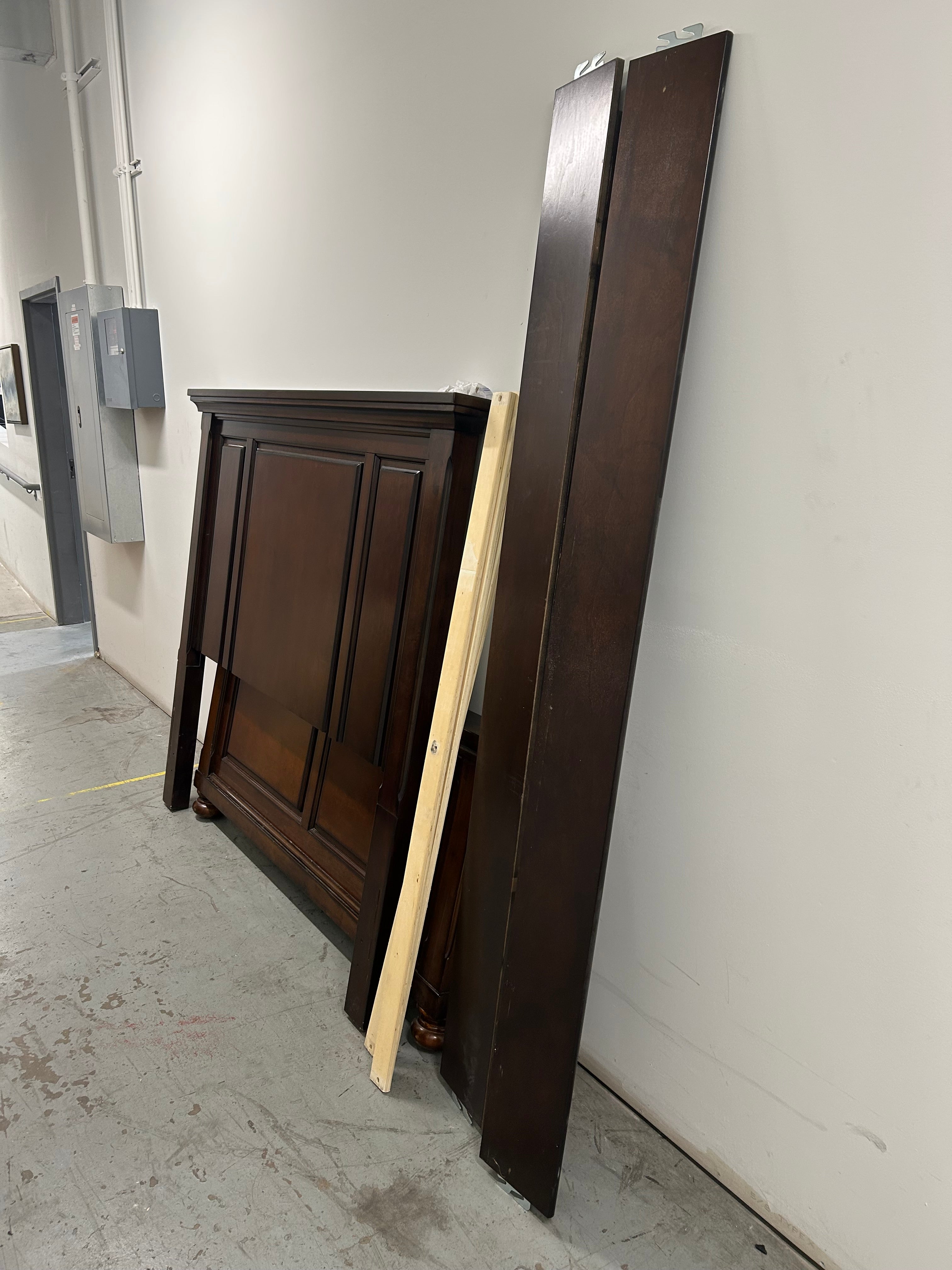 Looking for a sturdy and stylish bed frame? Look no further! Our EXCELLENT condition Ashley Brown Wooden Queen Bed Frame is the perfect addition to your bedroom. The rich brown color adds warmth and elegance to any space. Made with high-quality wood, this bed frame is built to last. It also features a classic design that will never go out of style. All pieces and hardware included.