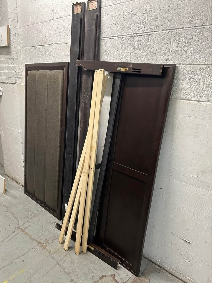 Contemporary style with sturdy construction — This LIKE-NEW Dark Brown Wooden Queen-Size Bed Frame combines timeless design with durable craftsmanship. Crafted from solid wood with a rich, dark brown finish, it offers reliable support for your mattress while adding warmth and elegance to any bedroom. The clean lines and versatile style complement a wide range of décor, while the raised frame provides convenient under-bed storage. Easy to assemble and built to last, it’s a functional and stylish centerpiece for your sleep space. All pieces included.