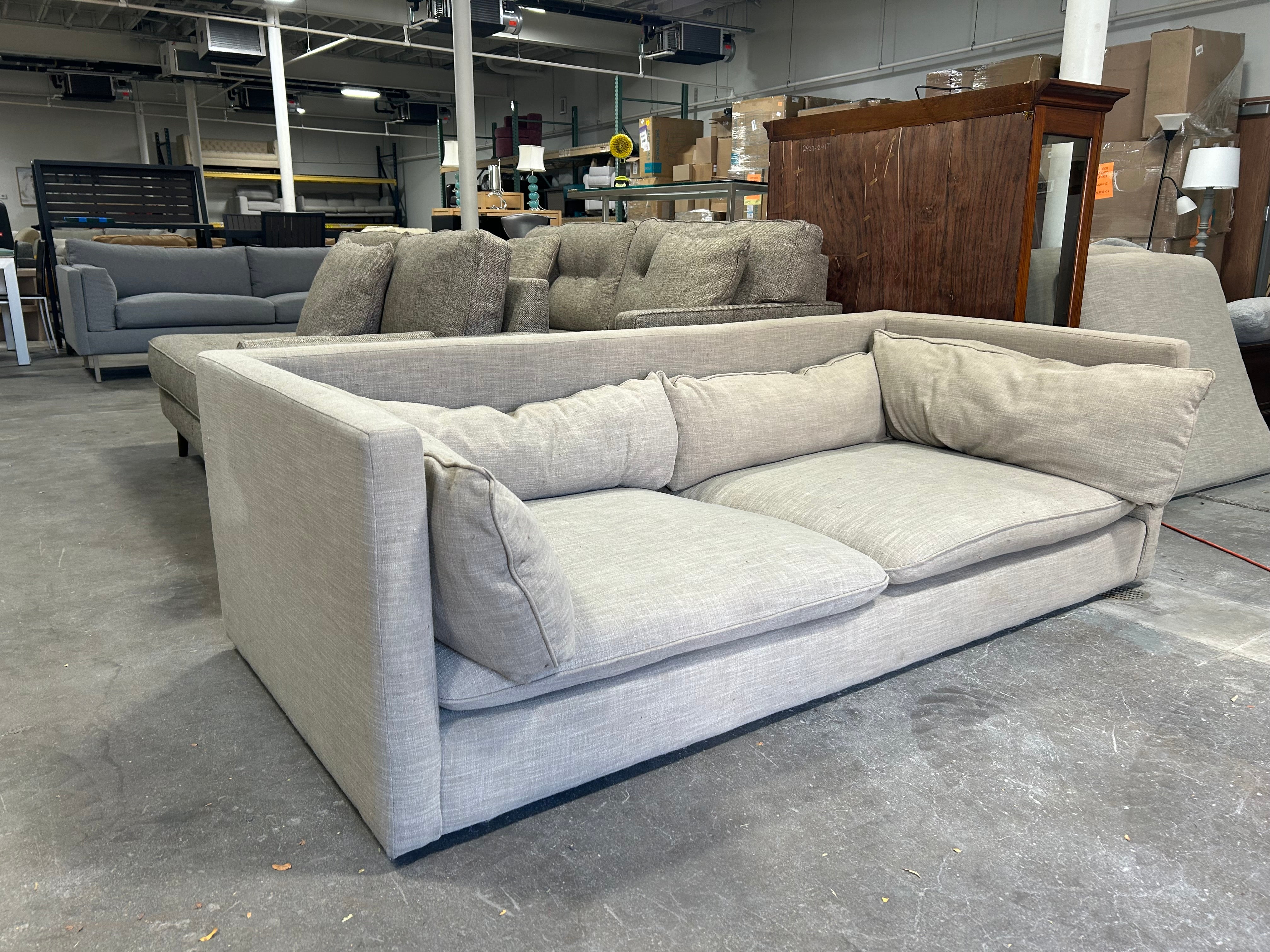 Introducing the Four Hands Contemporary Beige Cloud Sofa! This stunning piece is the perfect addition to any living room with its neutral beige color and cozy cloud-like design. Measuring 84”x39”x25”, it's the ideal size for lounging and entertaining. The plush cushions and deep seats provide maximum comfort while the sturdy frame ensures durability. Whether you're binge-watching your favorite show or hosting a movie night, this sofa has got you covered.