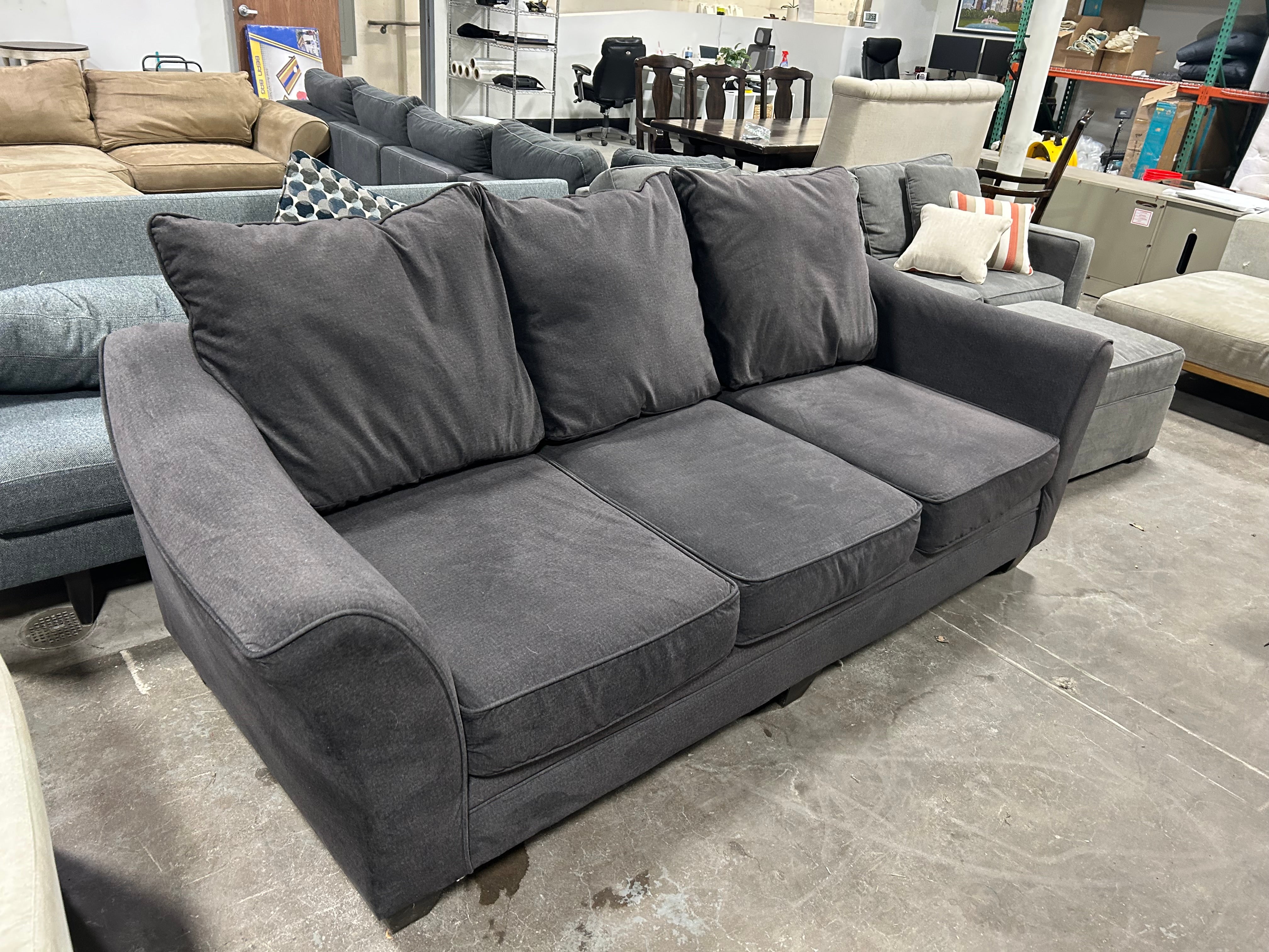 Introducing our stunning Contemporary Dark Gray Oversize Sofa! With its sleek design and comfortable seating, this sofa is the perfect addition to any modern living room. The rich gray color and oversized dimensions of 96”x44”x32” make it a statement piece that will elevate any space. But it's not just about looks - this sofa is also incredibly comfortable. The plush cushions and deep seating make it the perfect spot to relax and unwind after a long day.