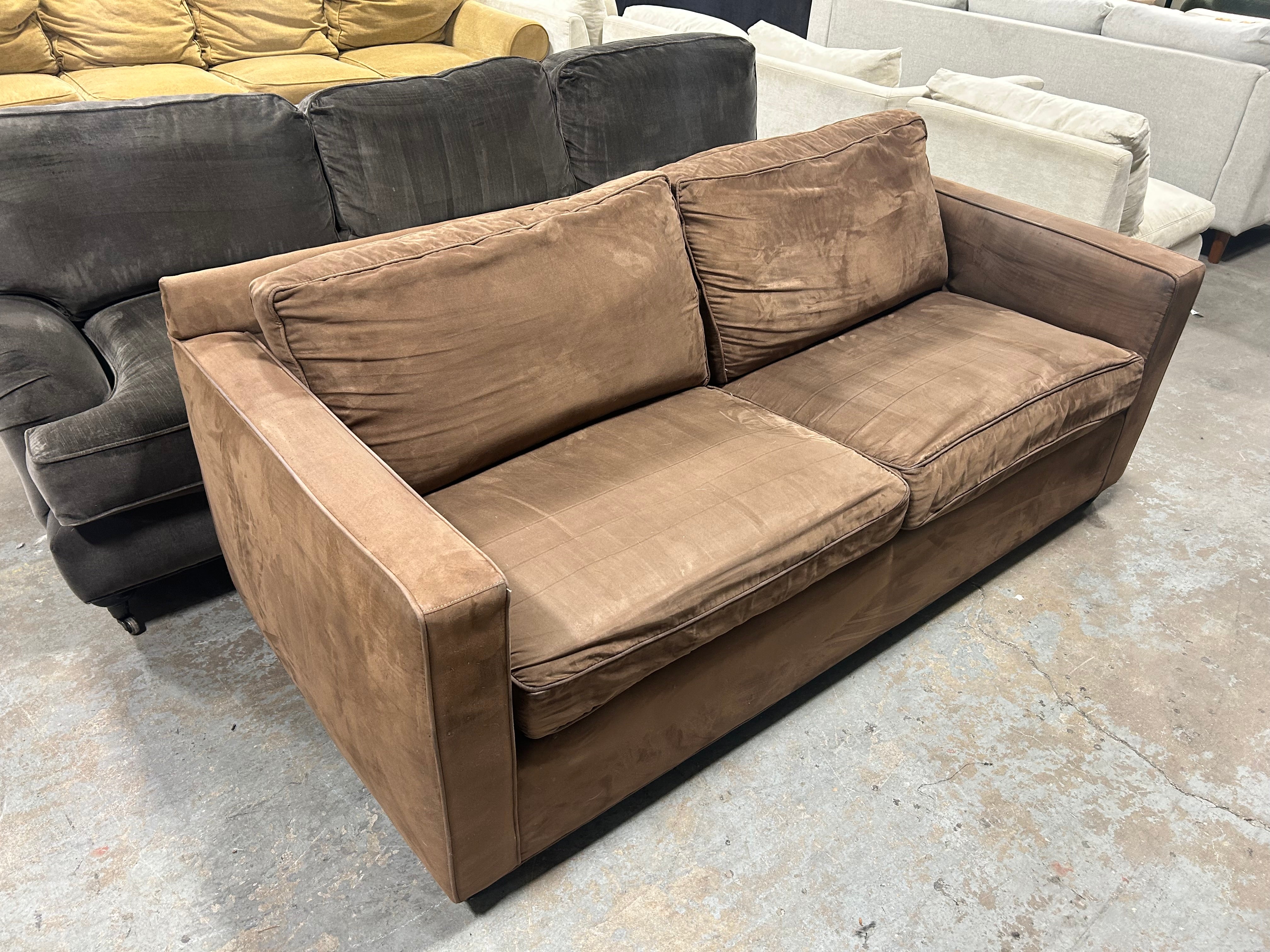 Introducing our beautiful Crate & Barrel Sofa in a rich dark brown color. This piece is the perfect addition to any living room, providing both style and comfort. Measuring 78” x 36” x 30”, it's the perfect size for any space. Made with high-quality materials, this sofa is built to last. The soft cushions and sturdy frame make it the ultimate spot for relaxation and lounging. The dark brown color adds a touch of sophistication to any room.