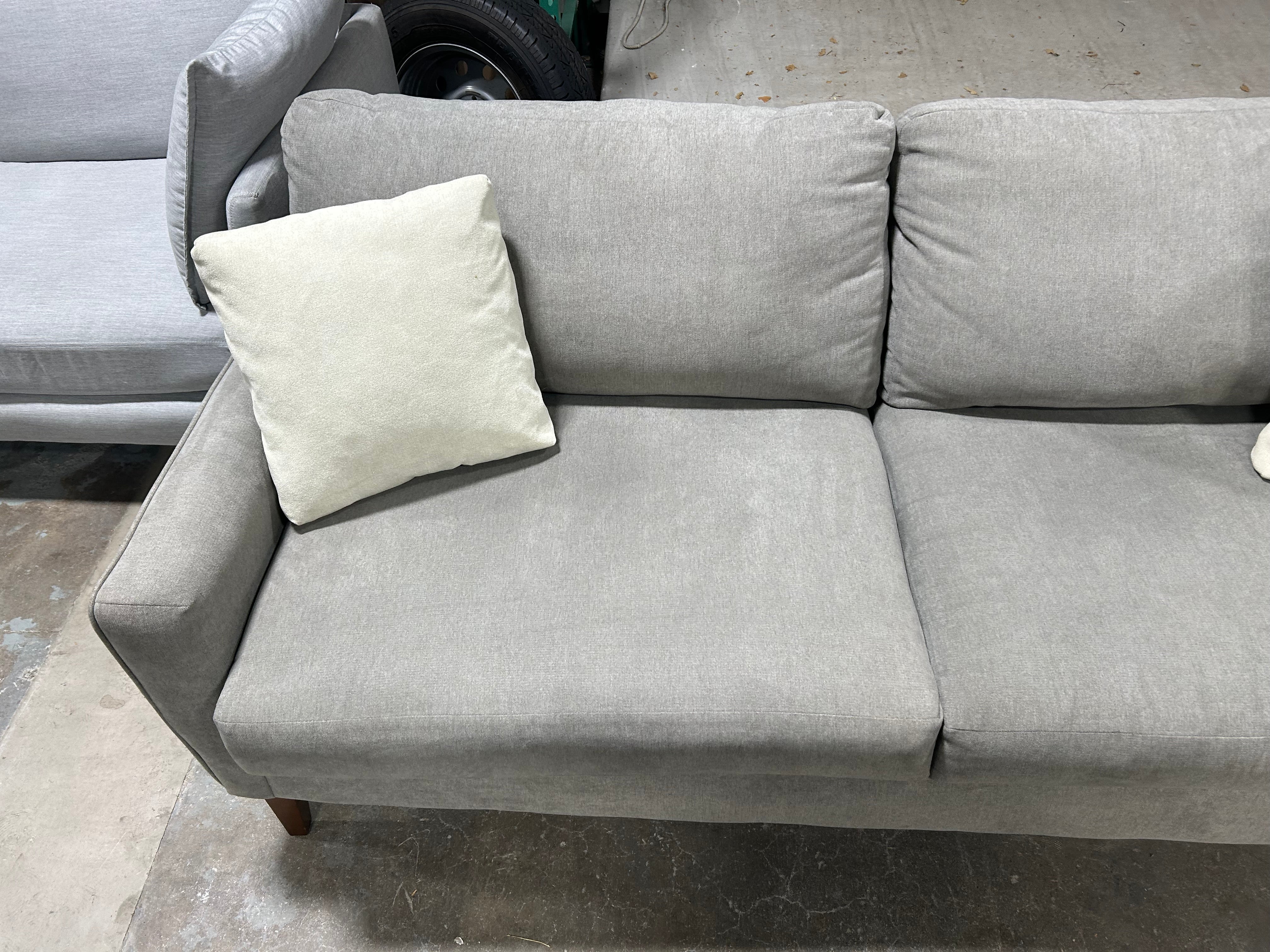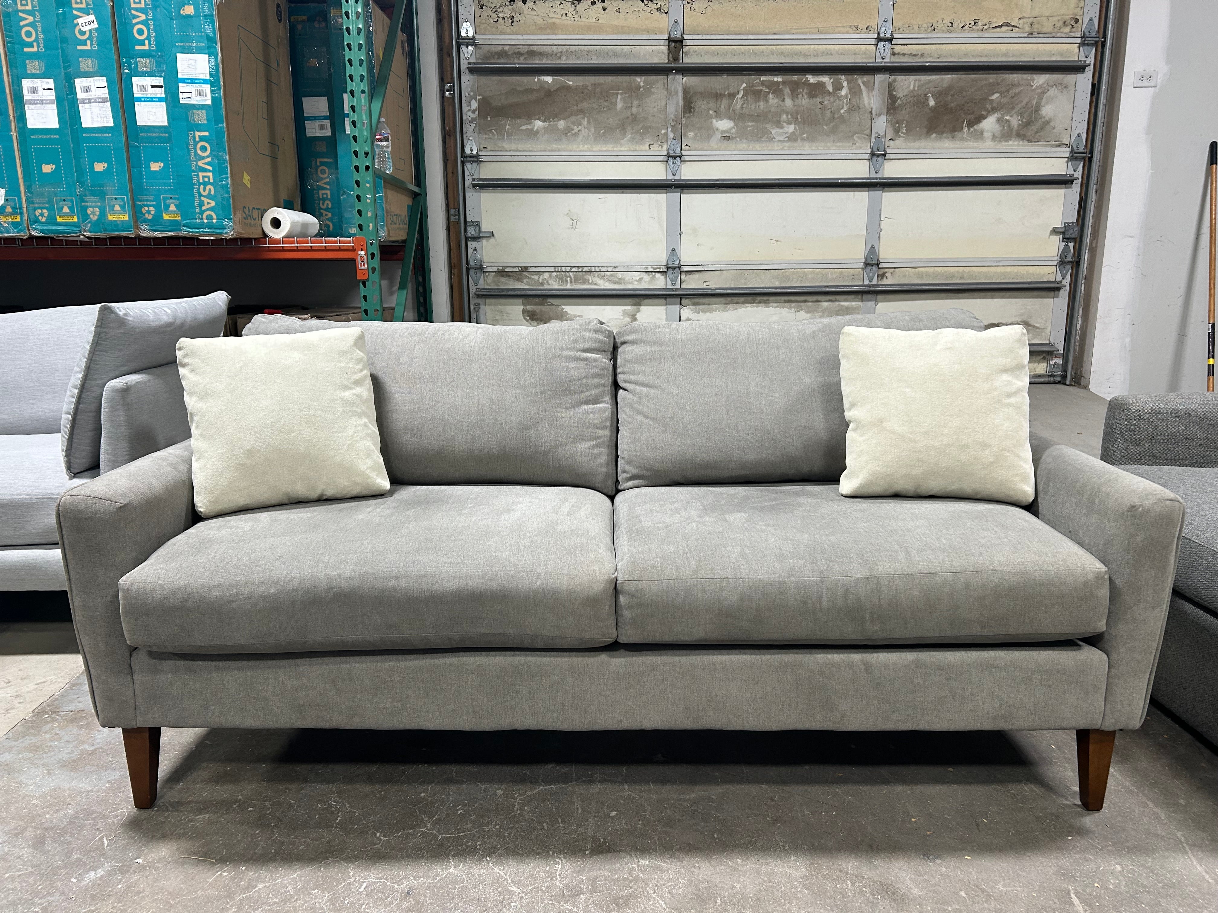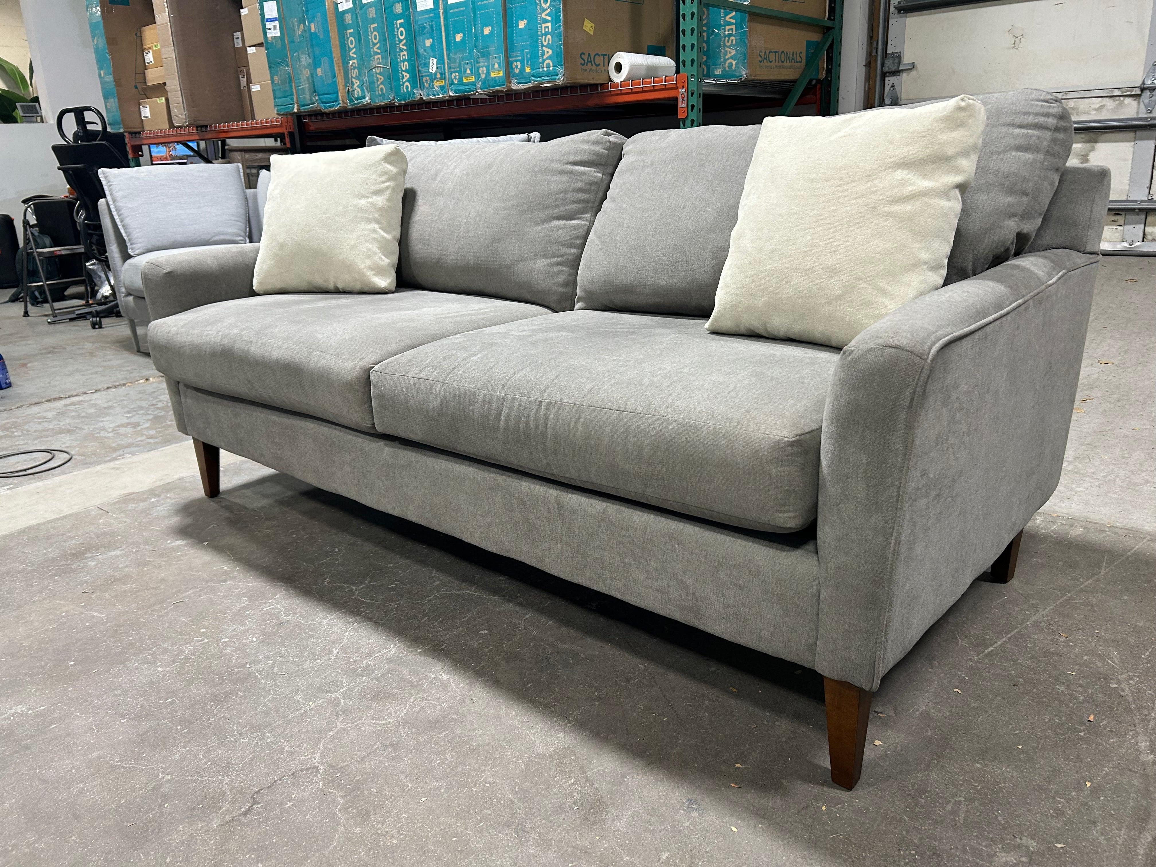 Looking for the perfect addition to your modern living room? Look no further than this stunning LIKE-NEW La-Z-Boy 75” Light Gray McKinney Sofa. The soft, light gray color will complement any color scheme and add a touch of elegance to your space. With dimensions of 75”x36”x30”, this sofa is the perfect size for cozy nights in or entertaining guests. Plus, the sleek design and comfortable cushioning will have you lounging in style.