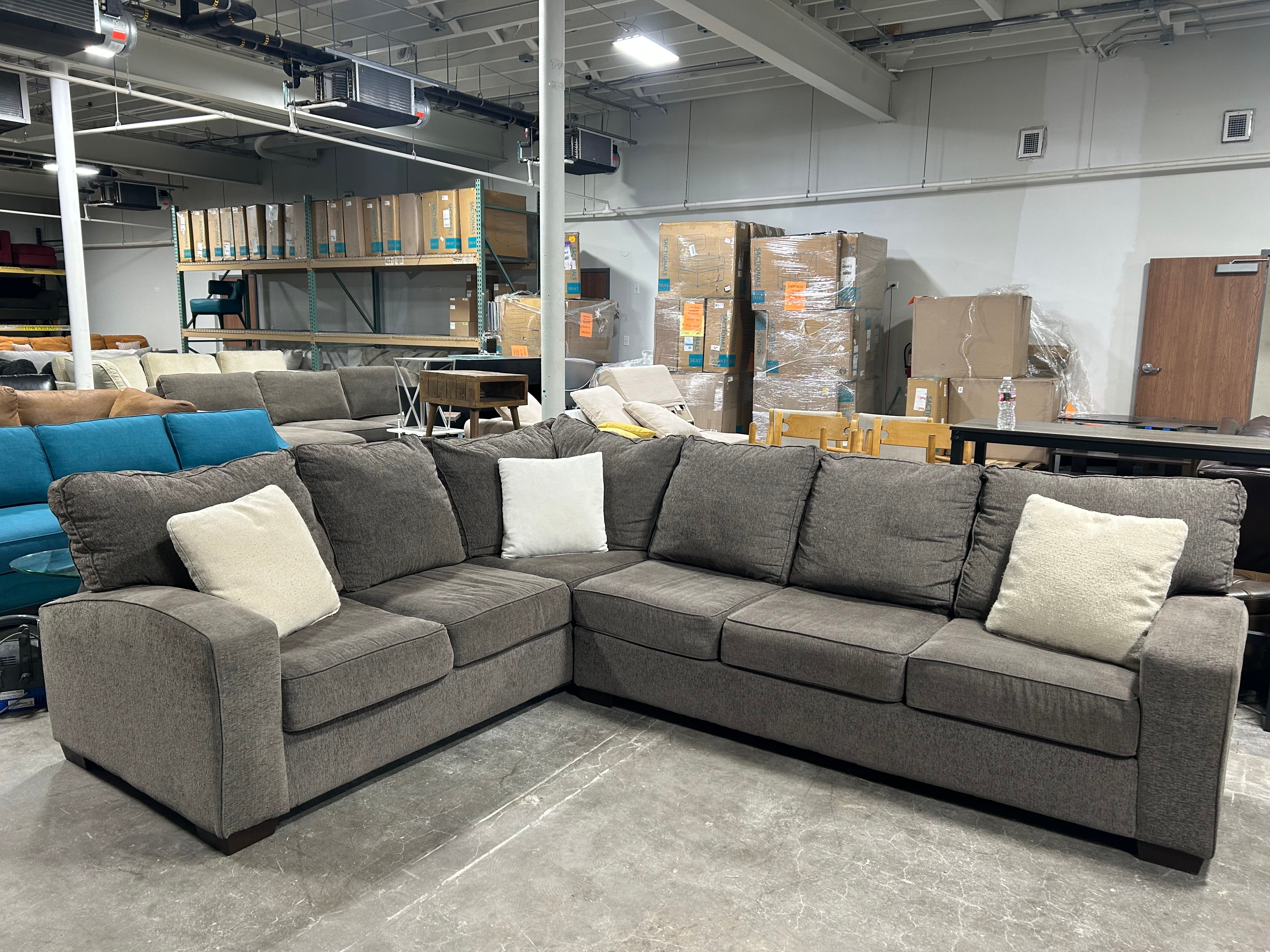 Introducing our sleek and modern Gray L-Shaped Sectional! This stunning piece will elevate any living space with its clean lines and subtle gray color. Measuring at 124”x94”x39”x31”, it provides ample seating for all your guests. The 2-piece L-shaped design allows for versatility in arranging to fit your space perfectly. Made with high-quality materials, this sectional is both stylish and comfortable. Whether you're lounging with a book or entertaining friends, this piece has got you covered.