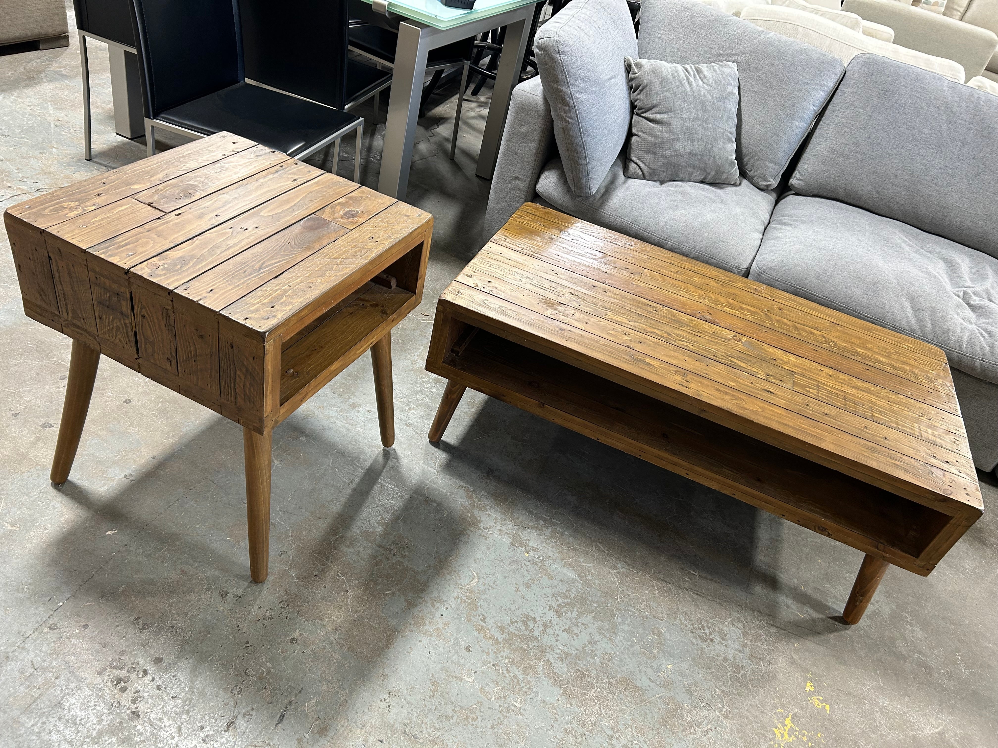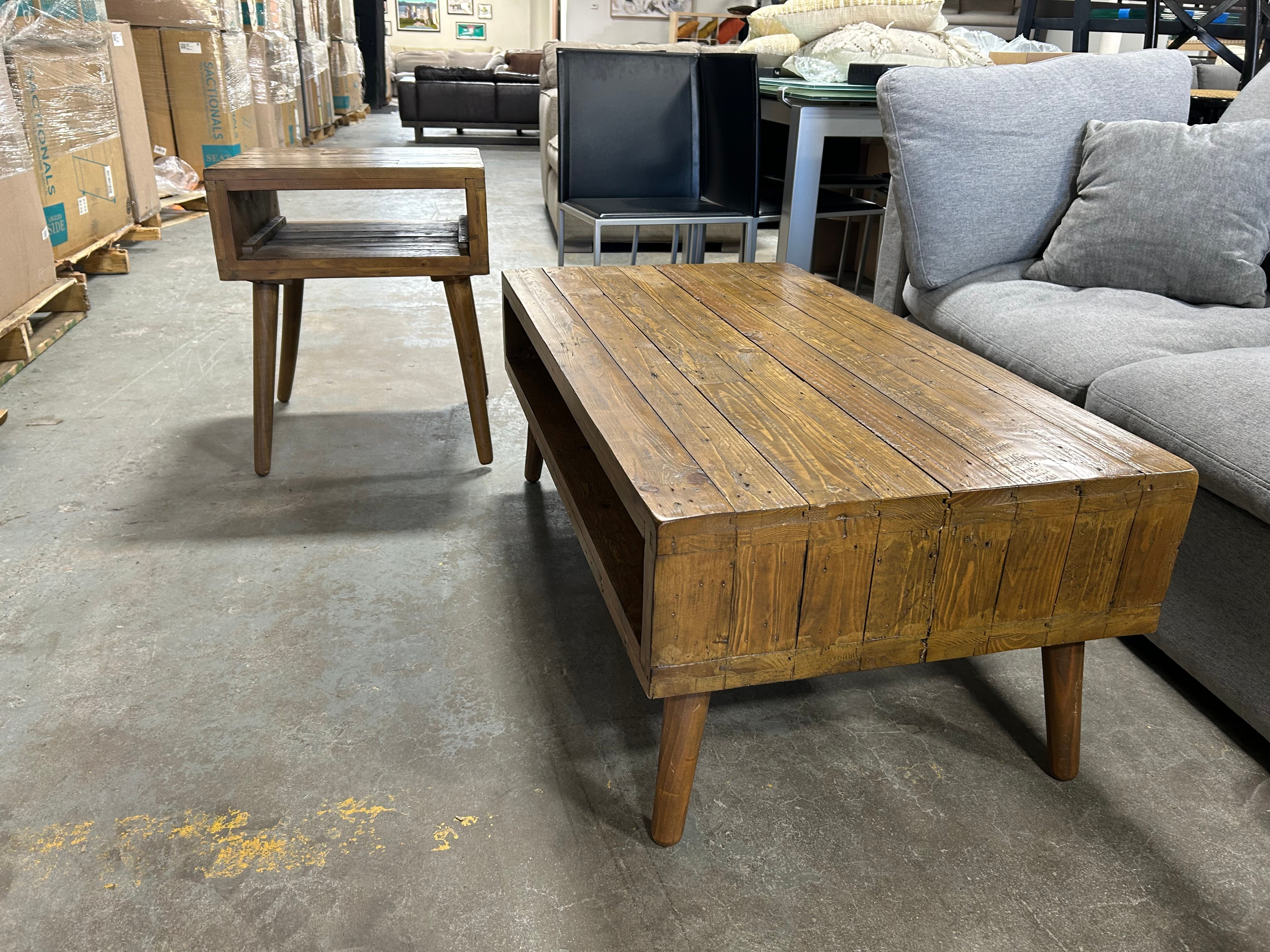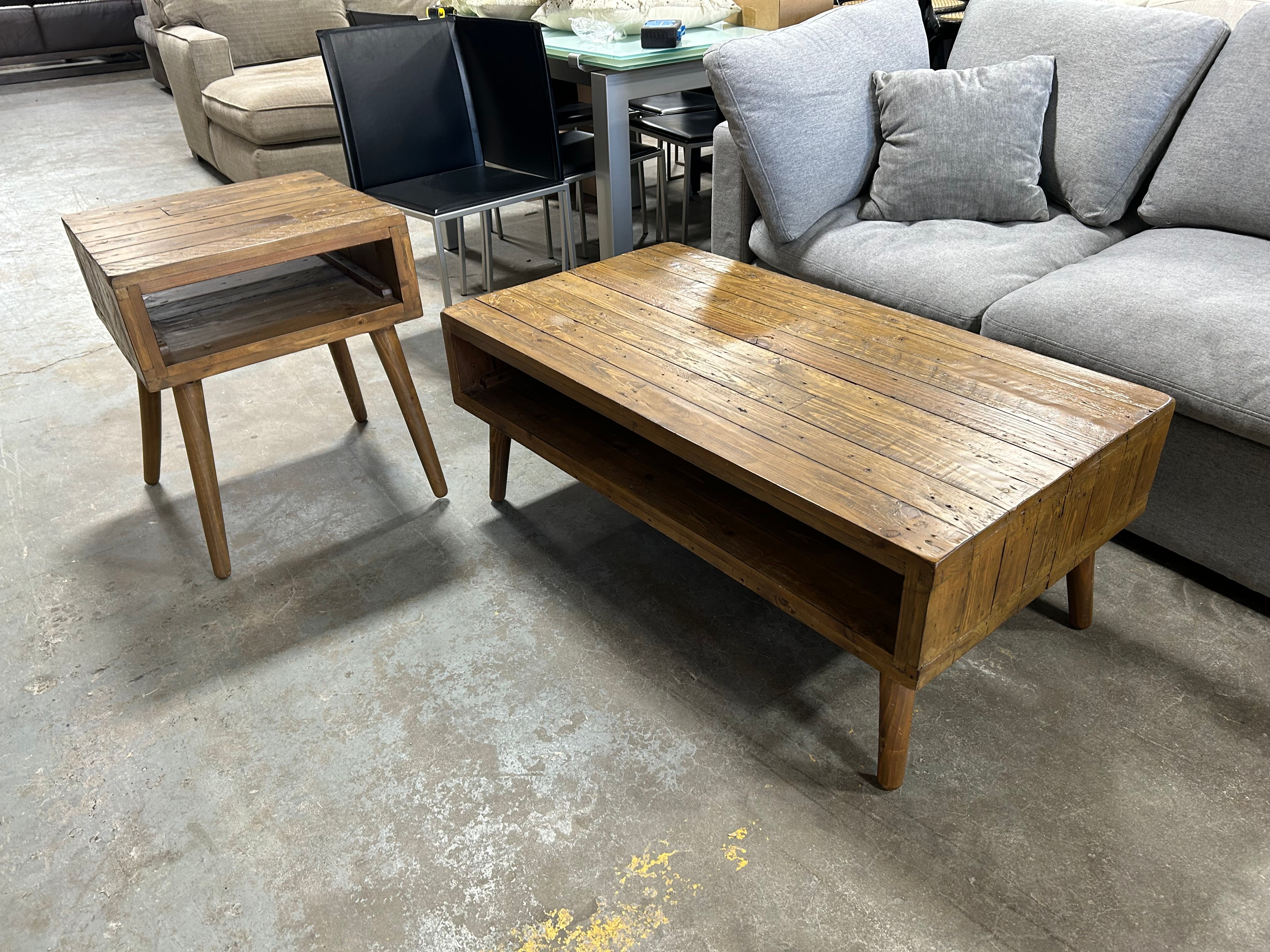 Looking for a stylish and functional addition to your living room? Look no further! This MINT condition Oak Wood MCM Coffee Table/End Table Set is the perfect choice. Crafted from high-quality oak wood, this set boasts a beautiful brown finish that will complement any decor. The coffee table measures 44”x24”x17” while the end table measures 20”x20”x24”, making them the perfect size for any space. With plenty of surface area and a sleek design, these tables are perfect for entertaining or simply relaxing at home.