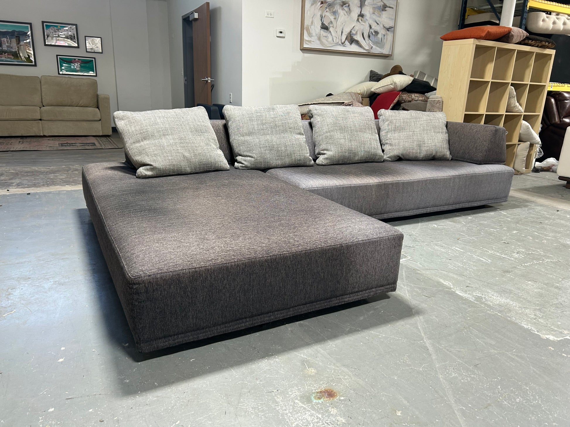 Looking for the perfect addition to your living room? Check out this 2-Pc Gray Modern Playground Sectional! With its sleek gray color and spacious dimensions of 120”x80”x40”x16”, this sectional is not only stylish but also functional. It's also perfect for kids with its playground design. Whether you're lounging or entertaining, this sectional has got you covered. NOTE: there is some sun-fading on the sectional (as pictured).