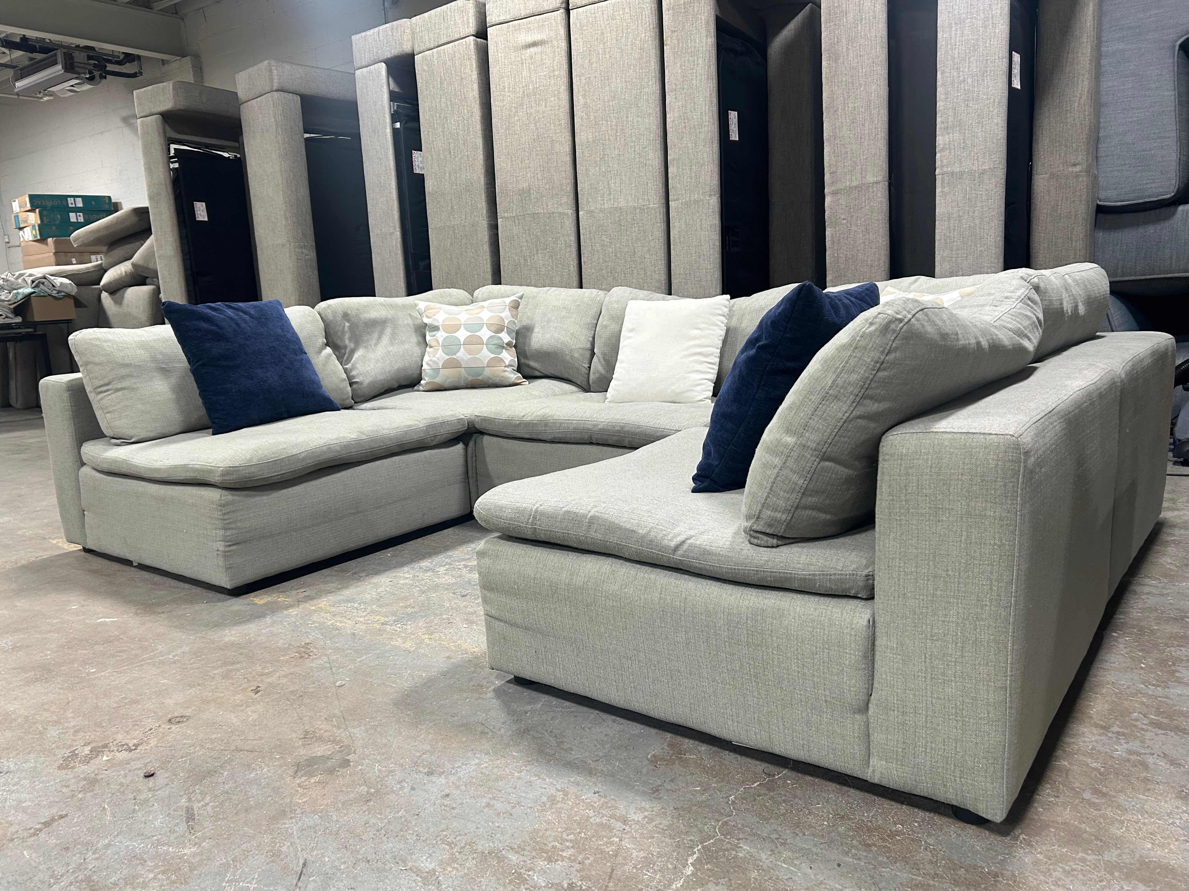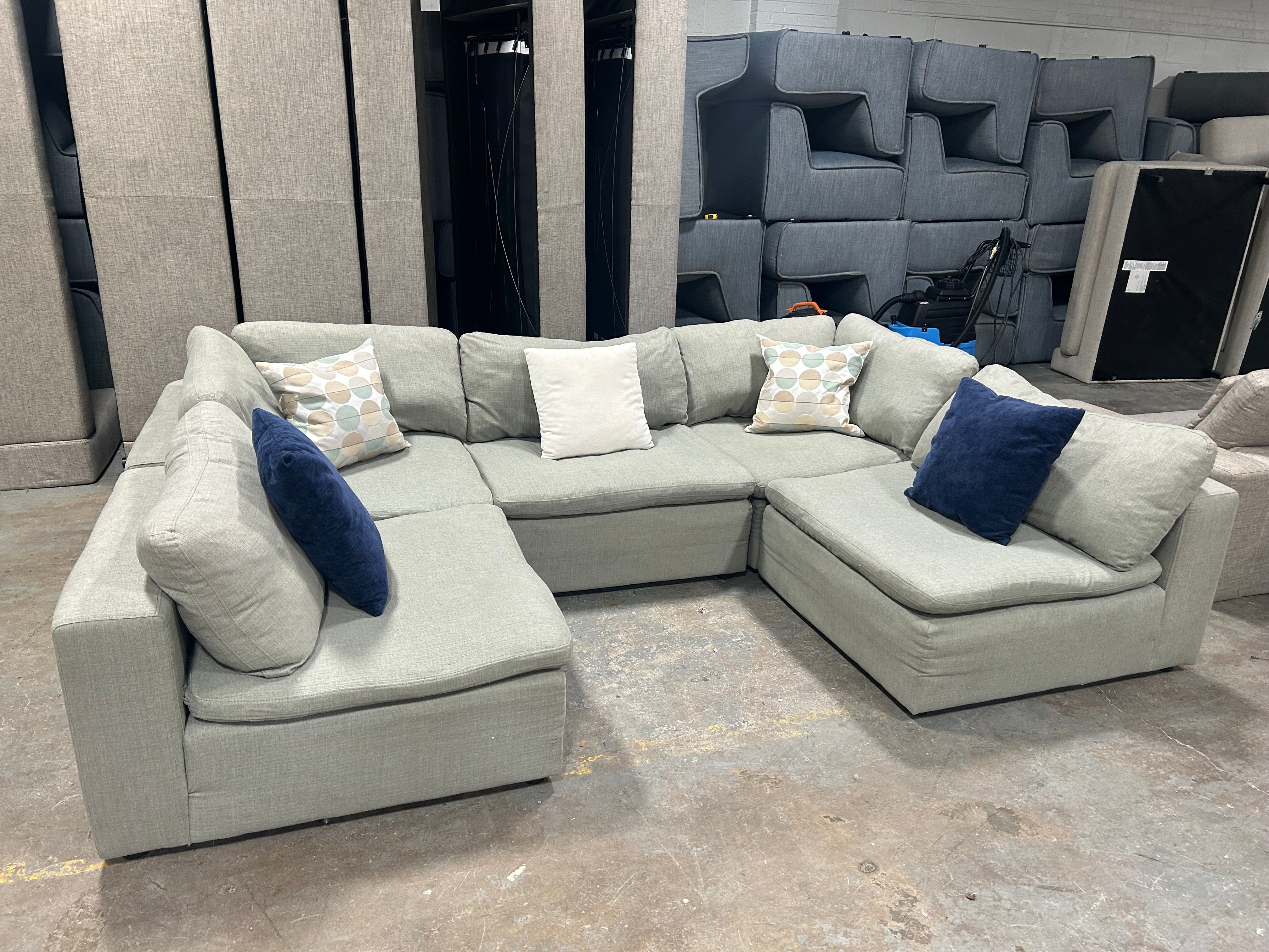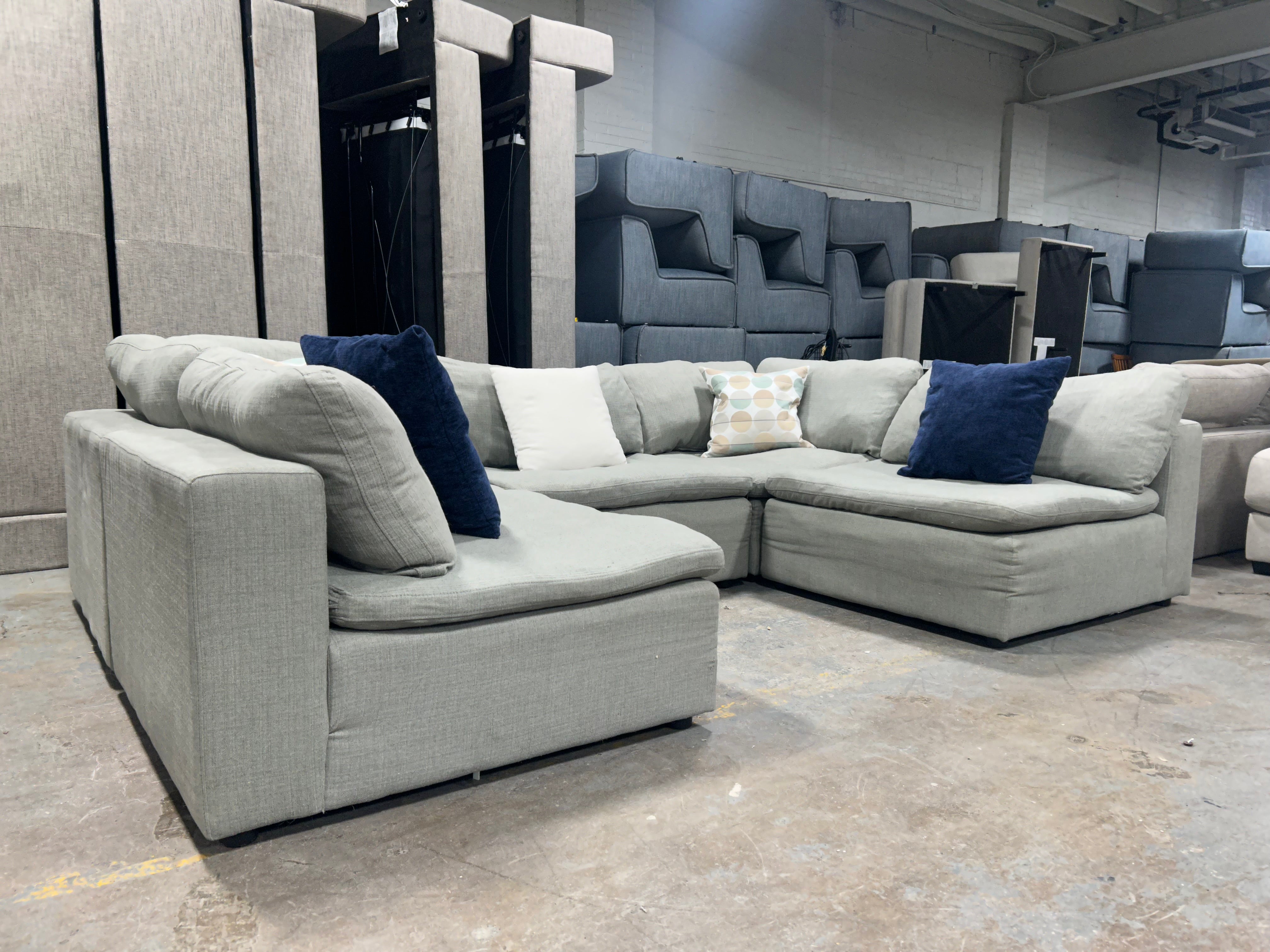 Looking for a cozy and stylish addition to your living room? Look no further! This 5-Pc Modular Light Gray Cloud Sectional is the perfect choice. The light gray color adds a touch of modern elegance, while the dimensions of 120”x79”x45”x24” make it the perfect fit for any room. Plus, it's in like new condition, so you can enjoy it for years to come.
