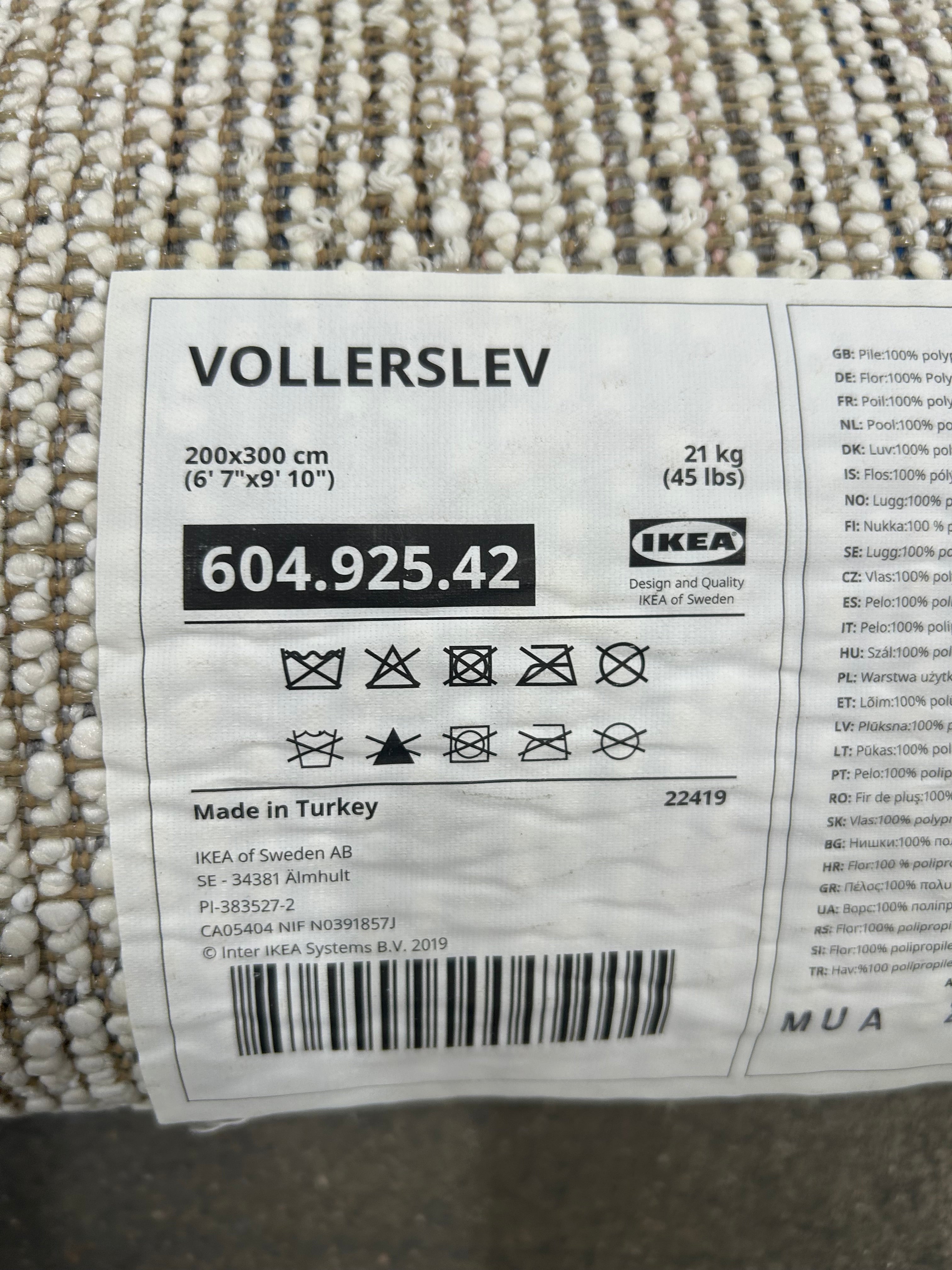 Add a touch of elegance to your living space with this 7'x10' White IKEA Vollerslev Rug. This pristine white rug will not only enhance the aesthetics of your room but also offer a warm and cozy feel underfoot. The rug measures 6’7”x9’10”, making it a perfect fit for any medium to large-sized rooms. This IKEA rug is versatile and can easily blend with any home decor style. Its white color can make your space look bigger and brighter.