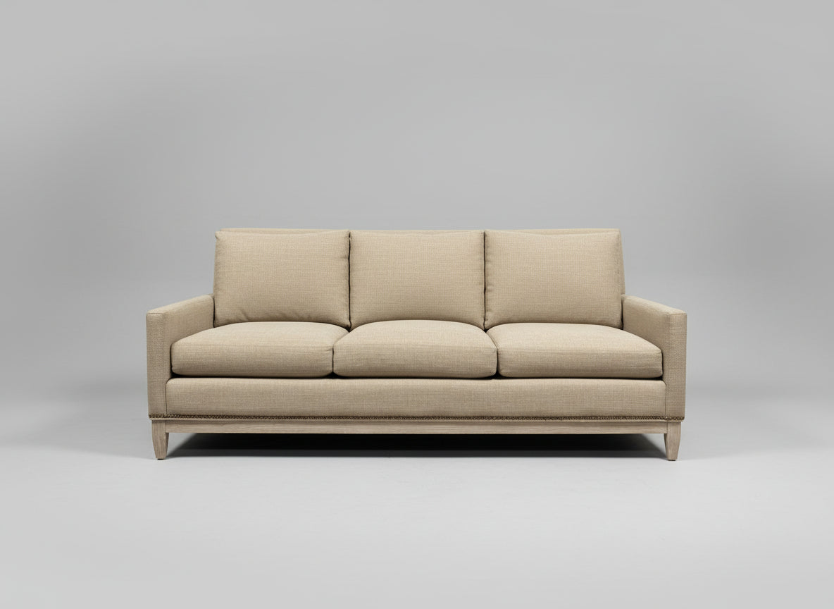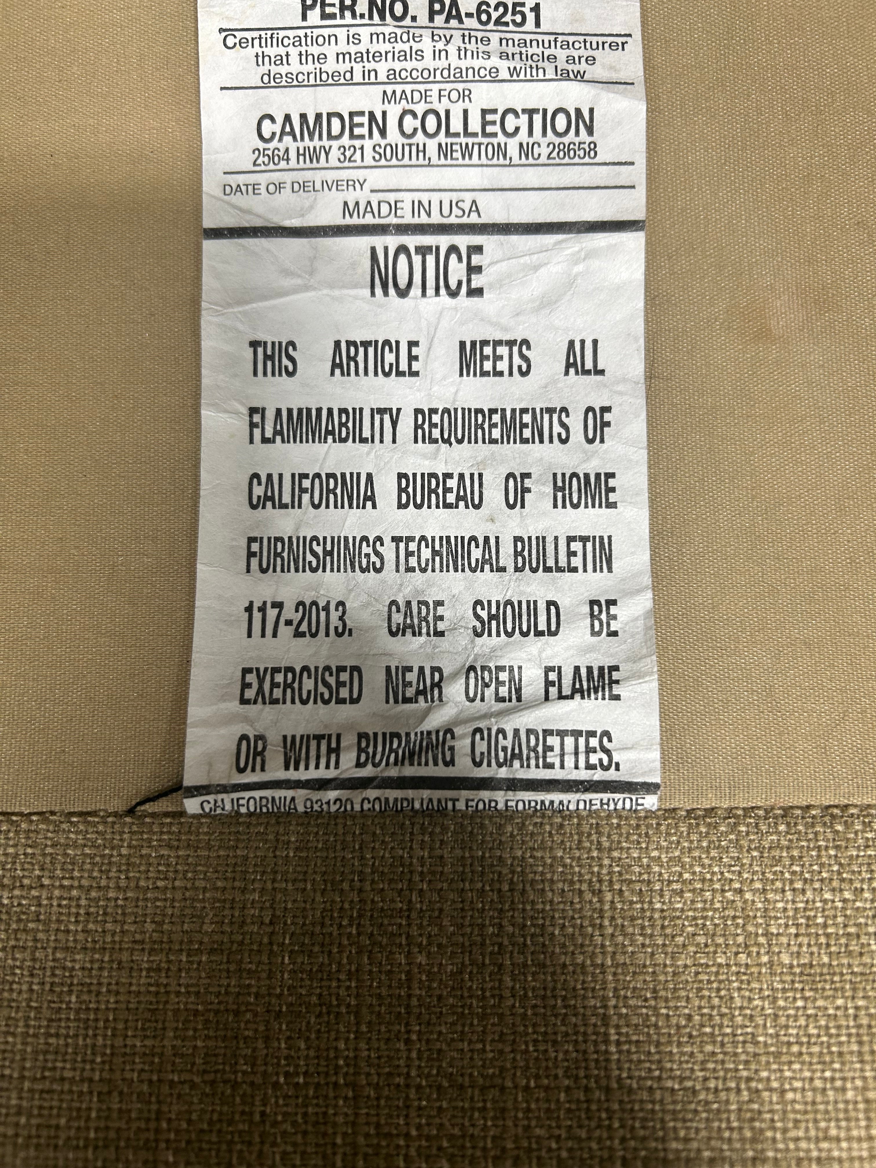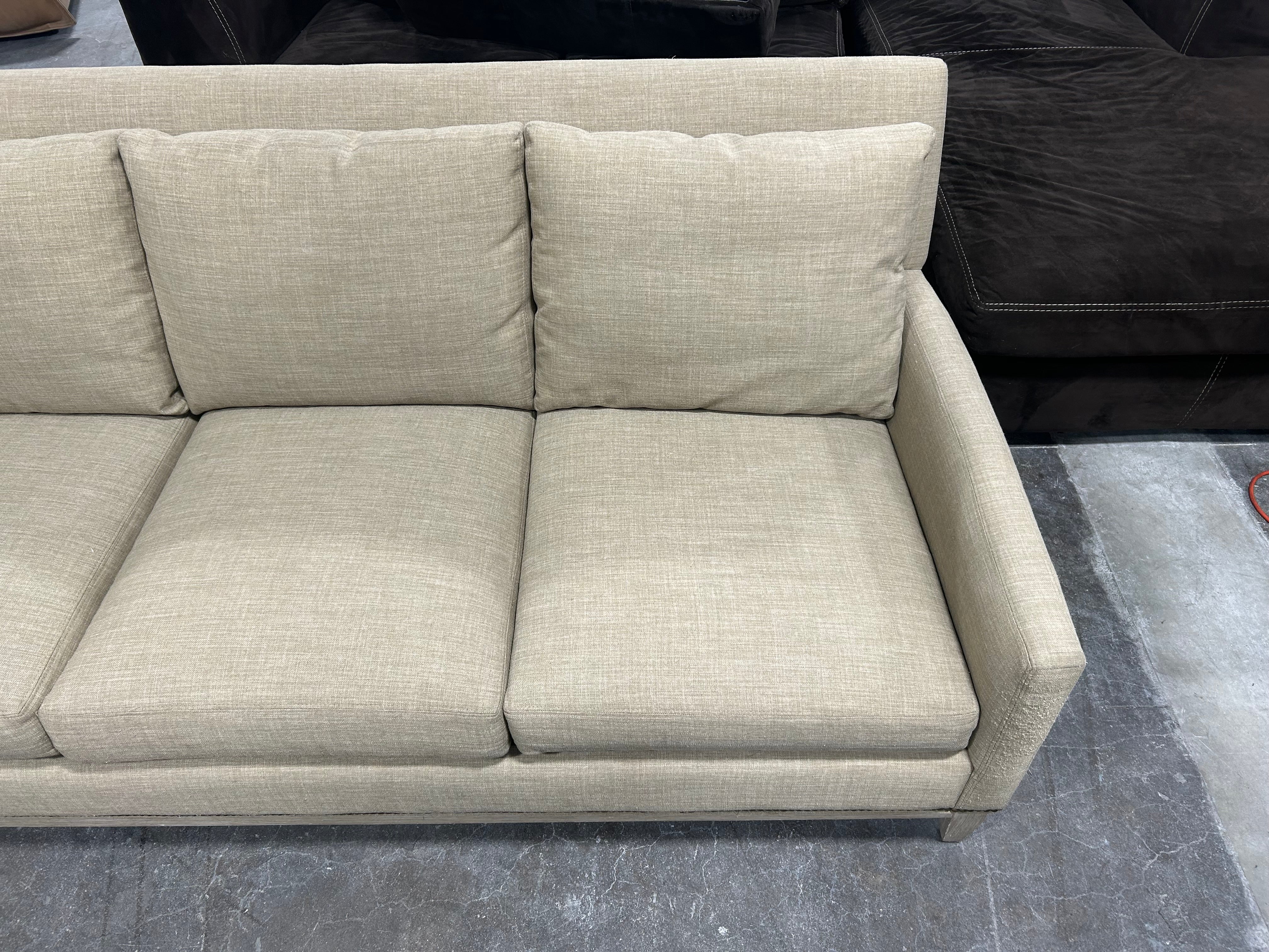 Looking for a stylish and comfortable addition to your living room? Look no further than this Arhaus Beige 78” Camden Collection Sofa. The neutral beige color will complement any home decor, while the 78”x40”x34” dimensions provide ample space for relaxing. The nailhead studded trim gives this sofa a touch of elegance, while the wood trim base adds a touch of rustic charm. Perfect for cozy nights in or entertaining guests. Don't miss out on this beautiful piece!