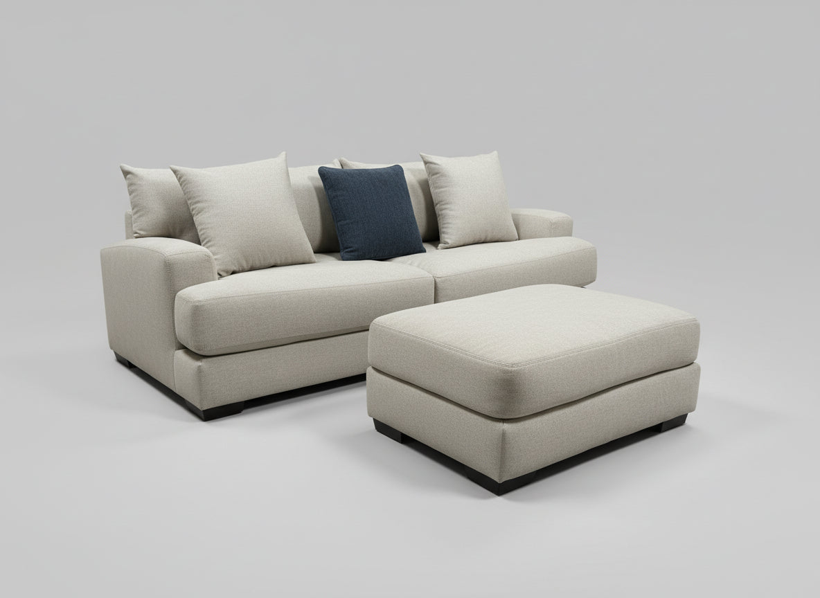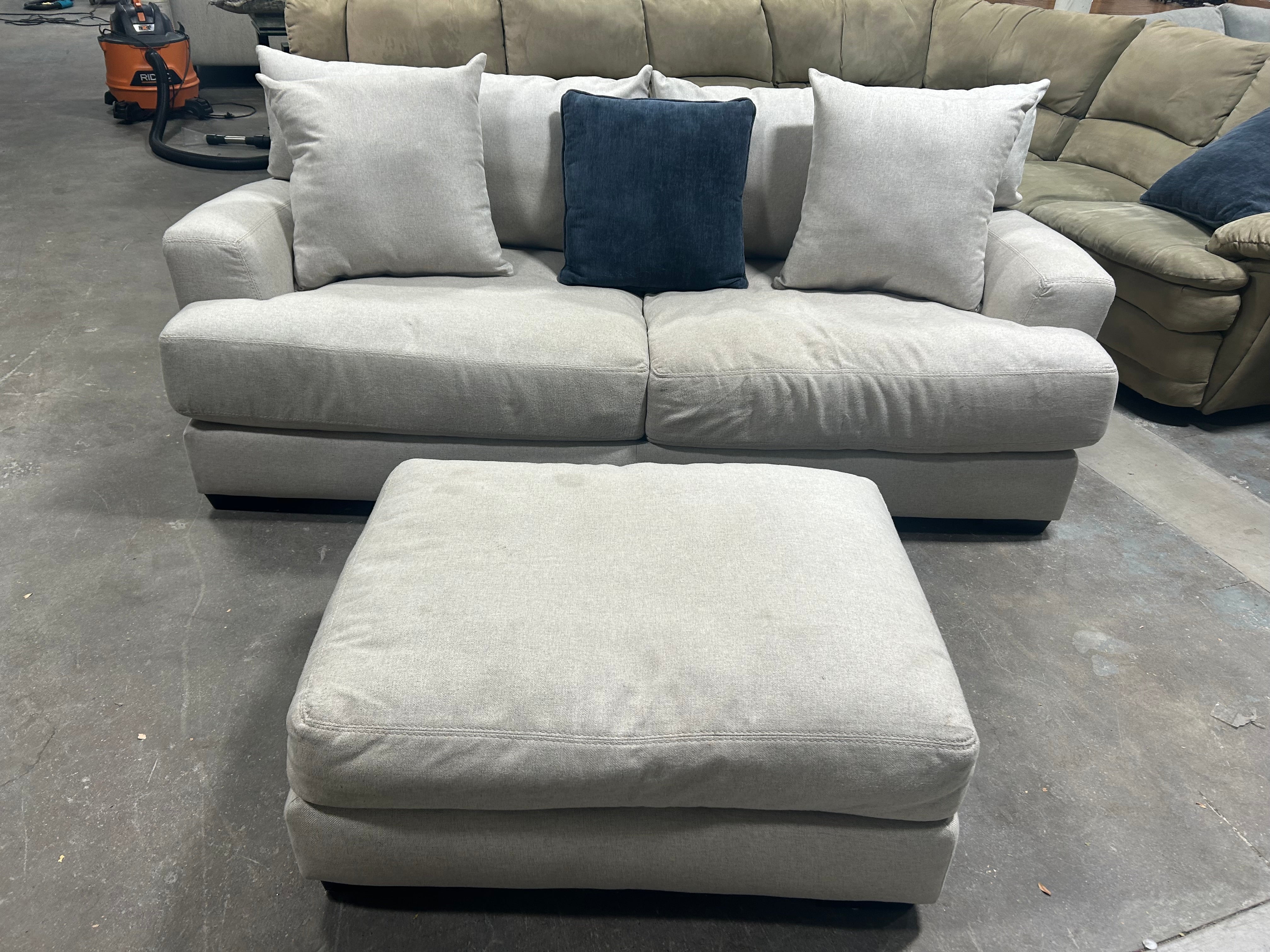 Contemporary Light Gray Oversize Sofa w/Ottoman