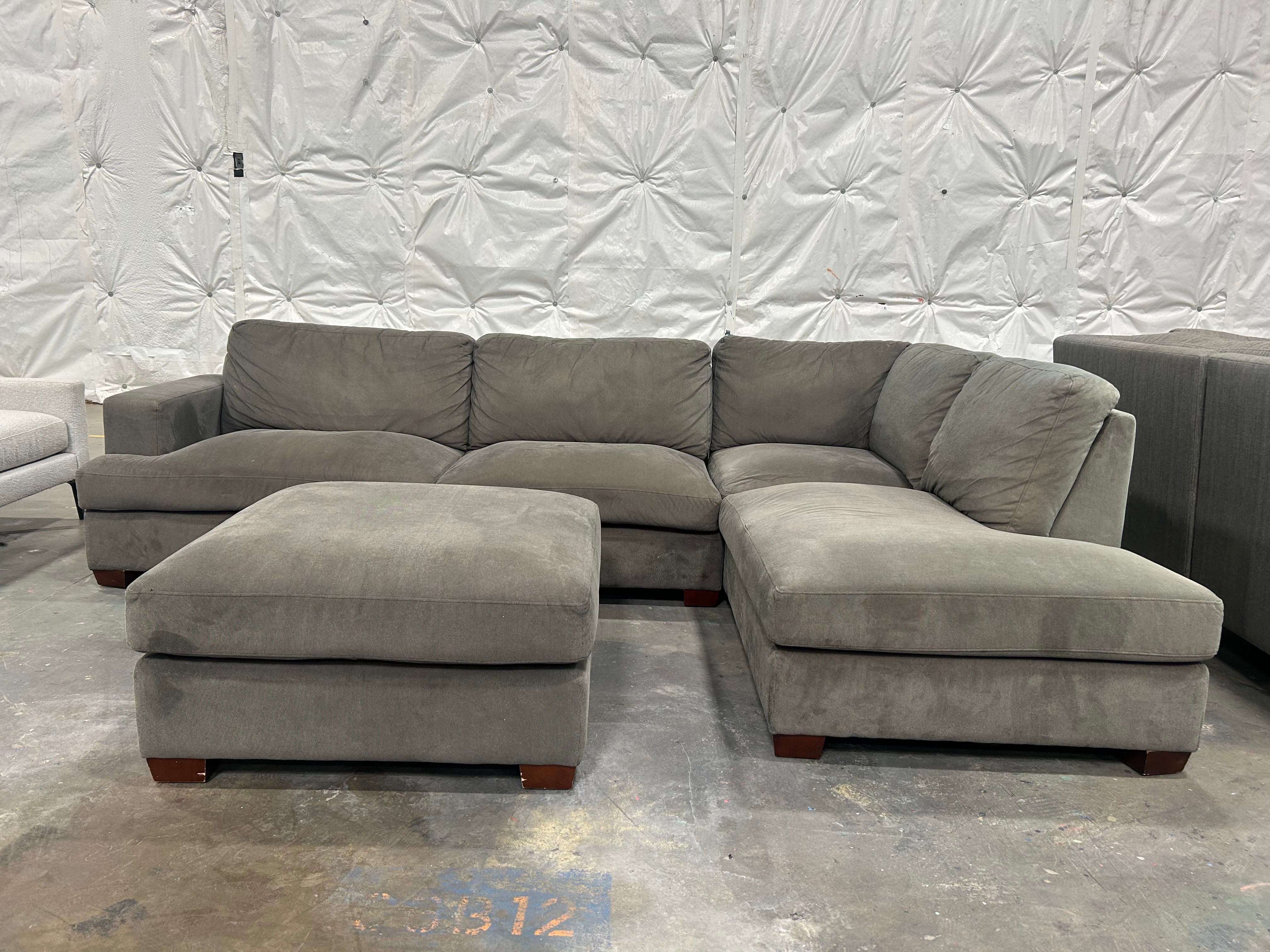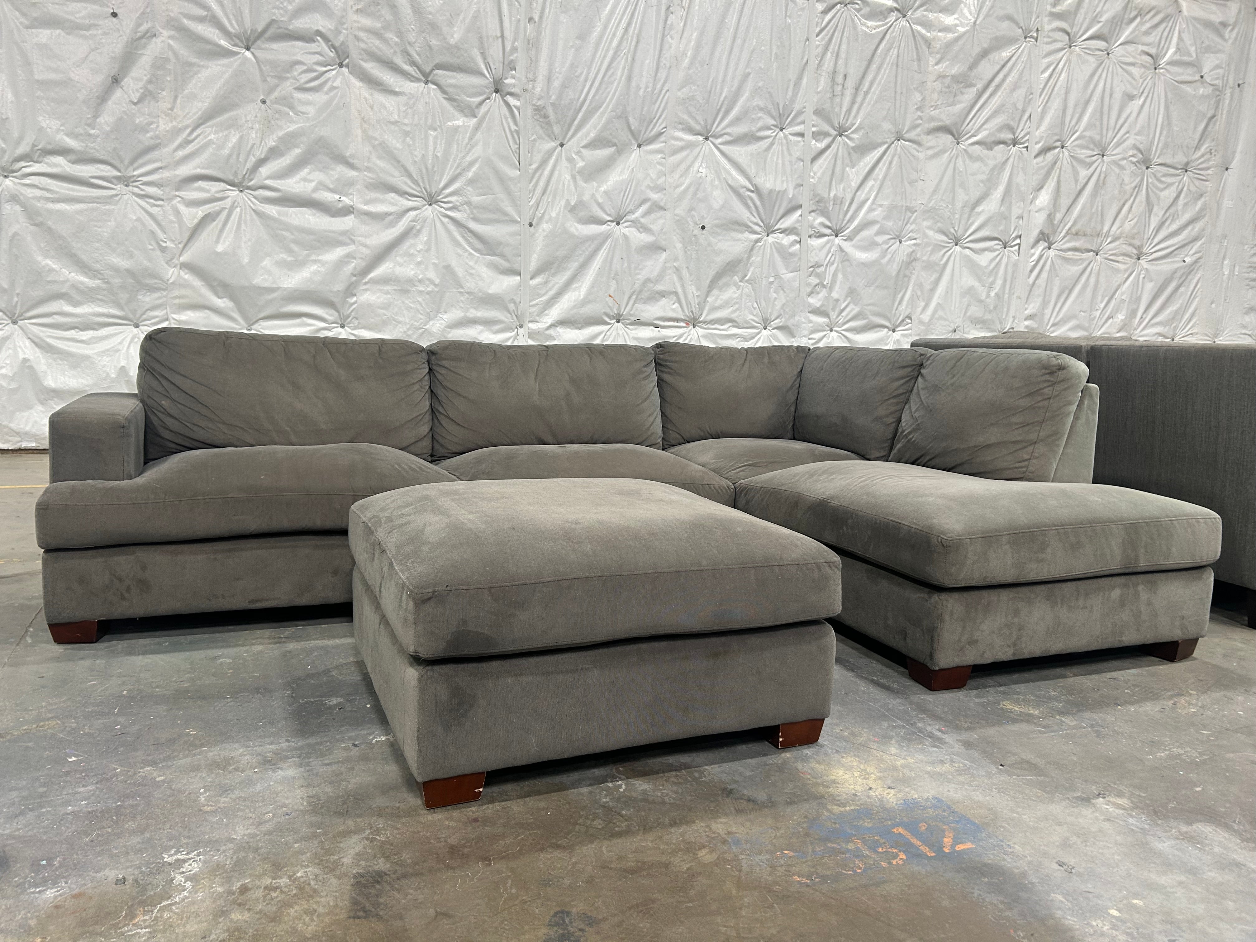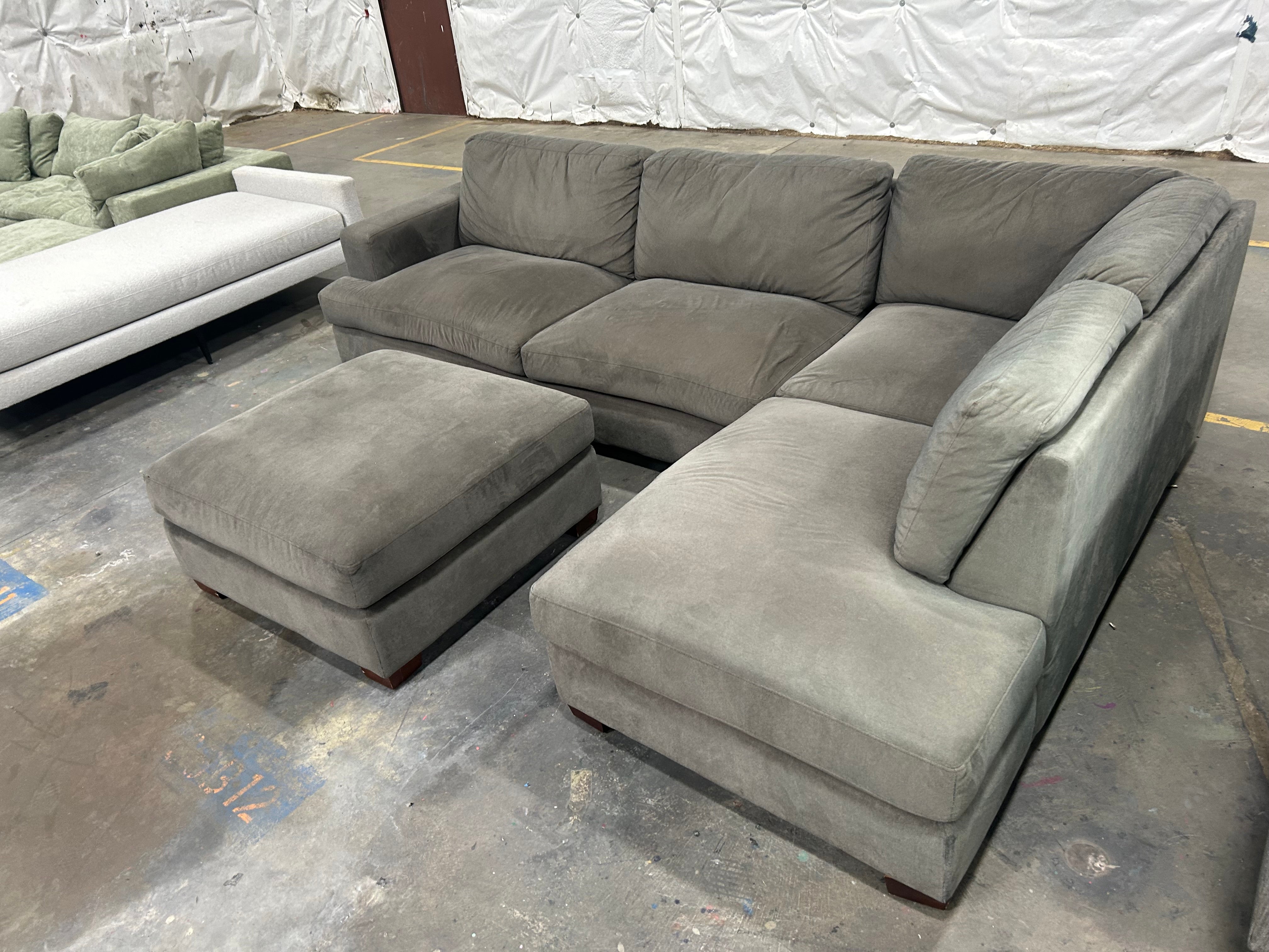2-Pc Contemporary Gray Chaise Sectional w/Ottoman