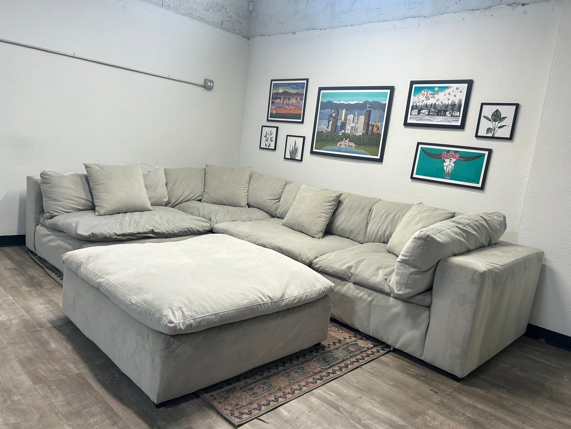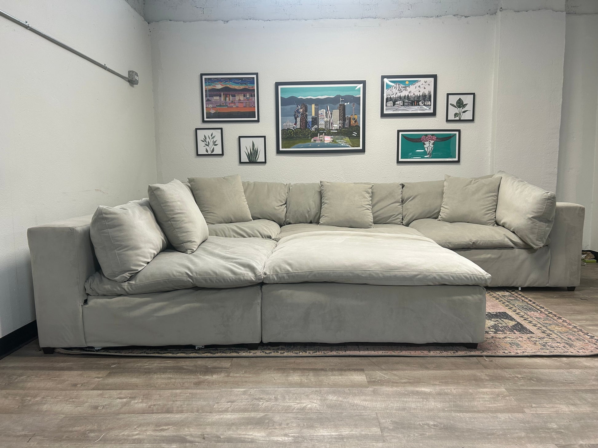 5-Pc Modular Sky Grey Velvet Cloud Sectional