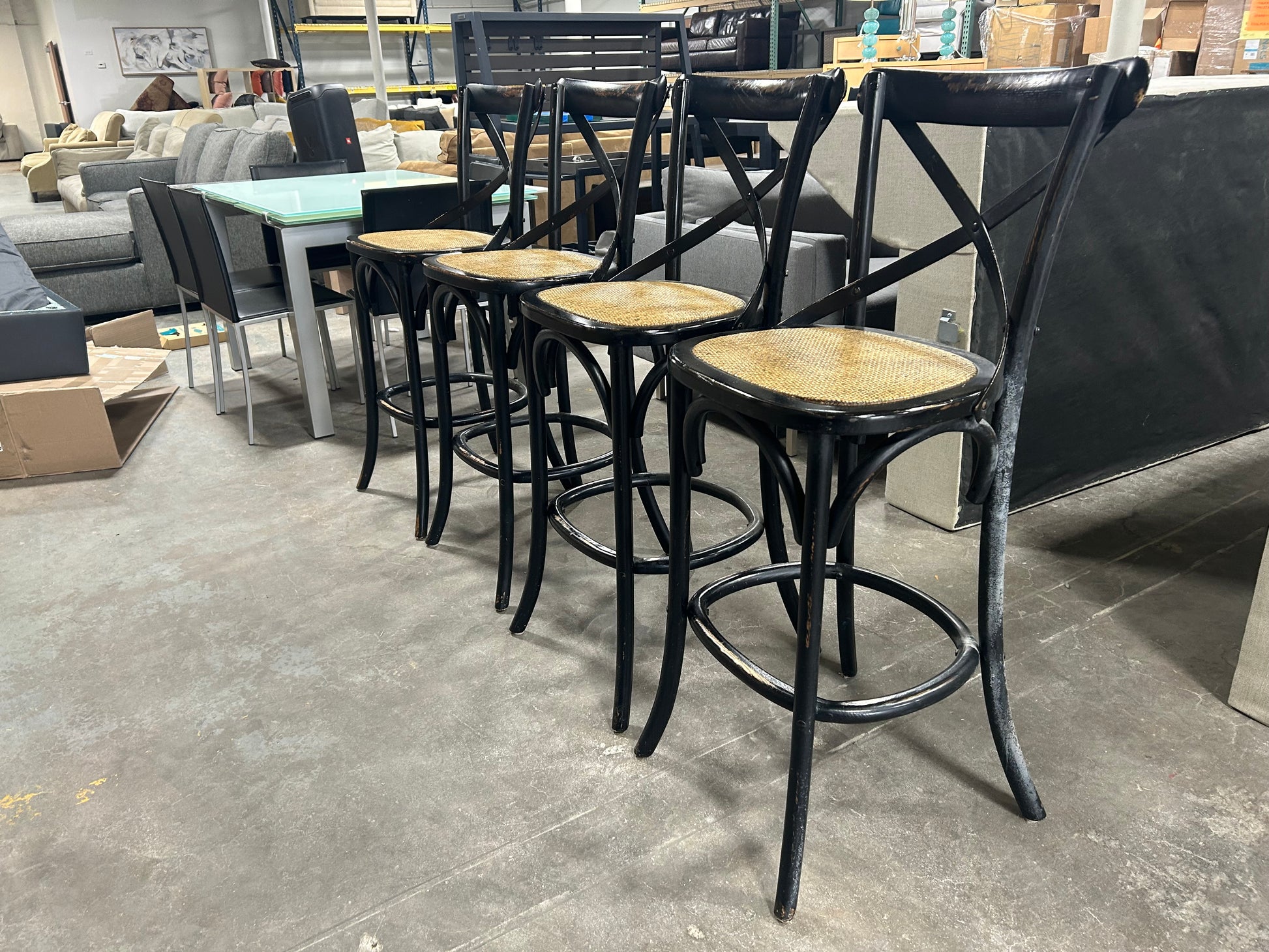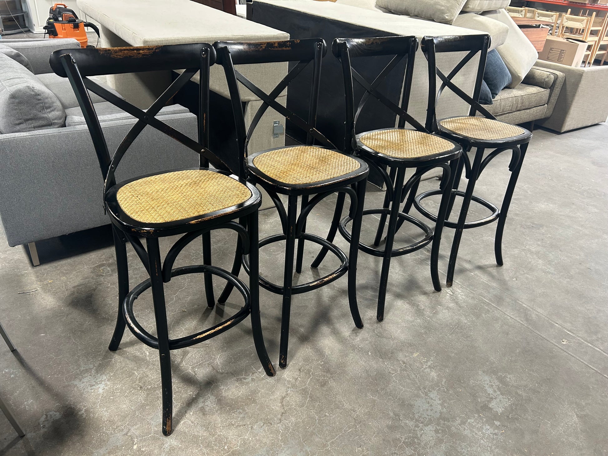 Arhaus 4-Pc Wicker & Wood Cadence Bar Stool Set