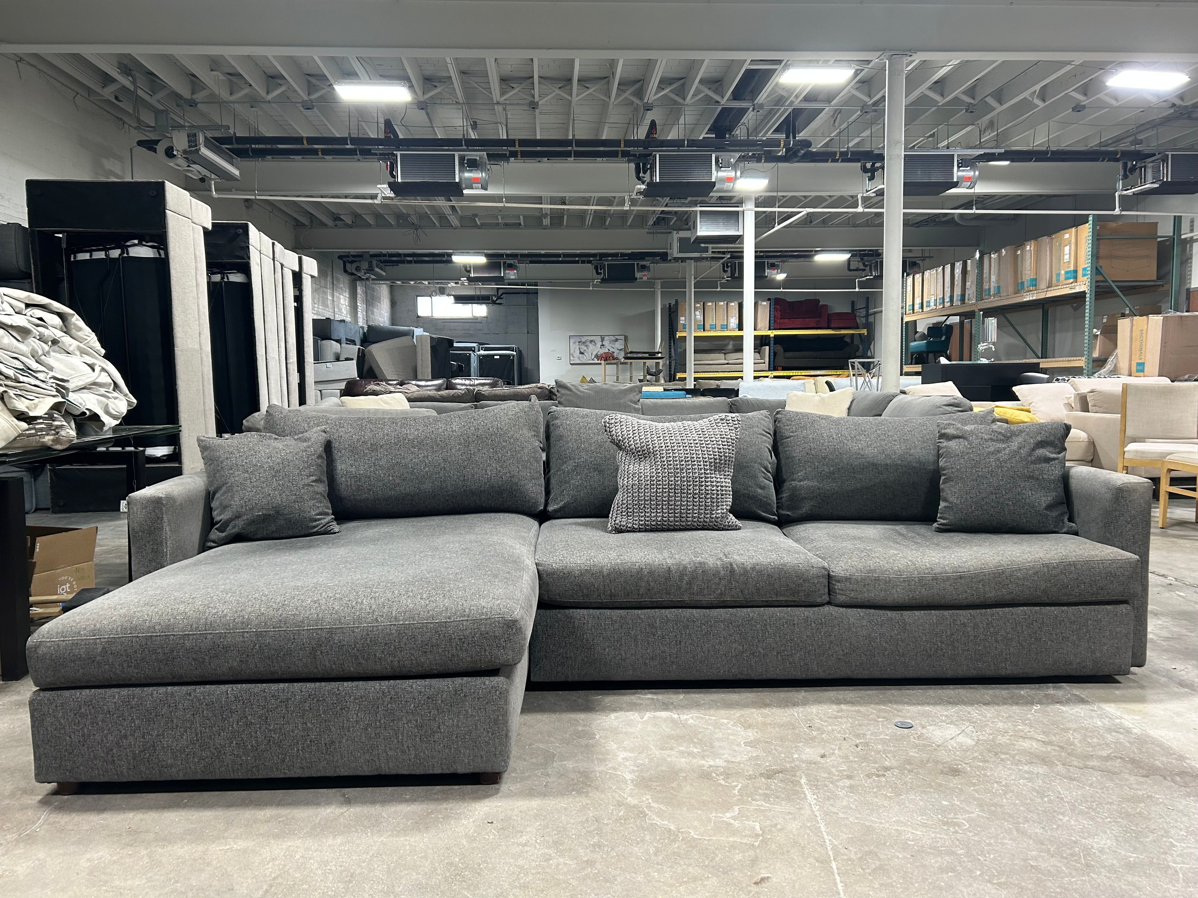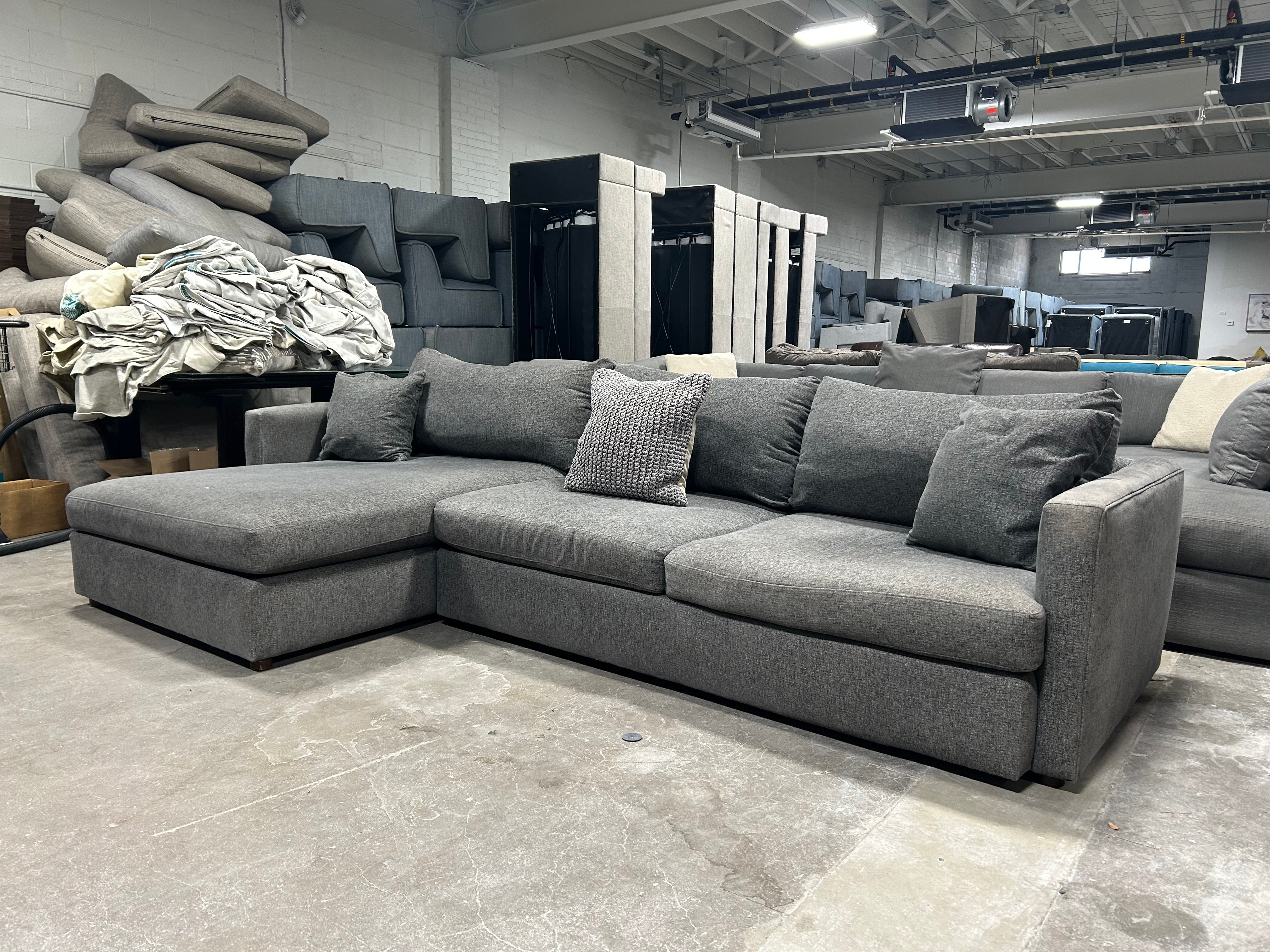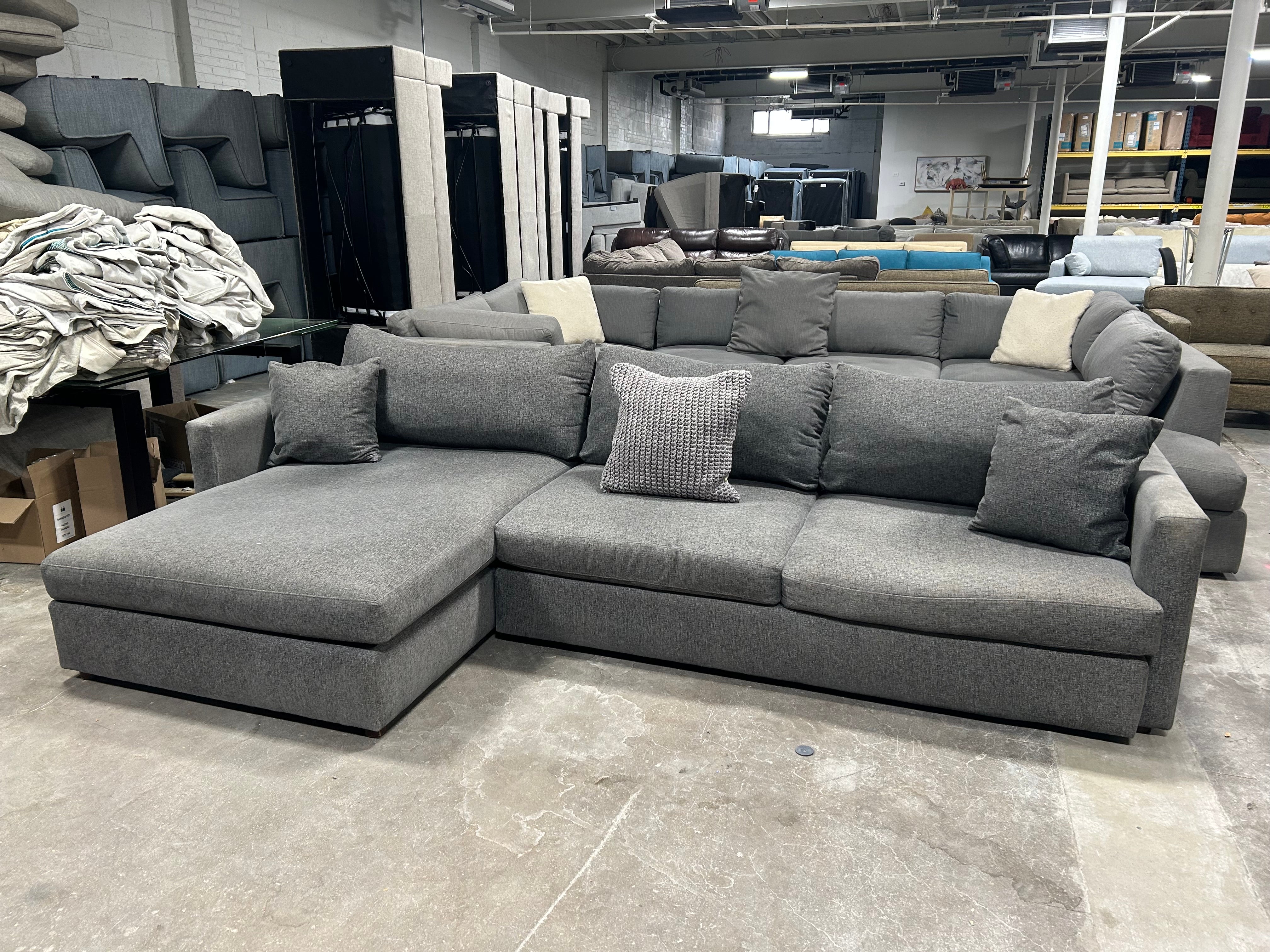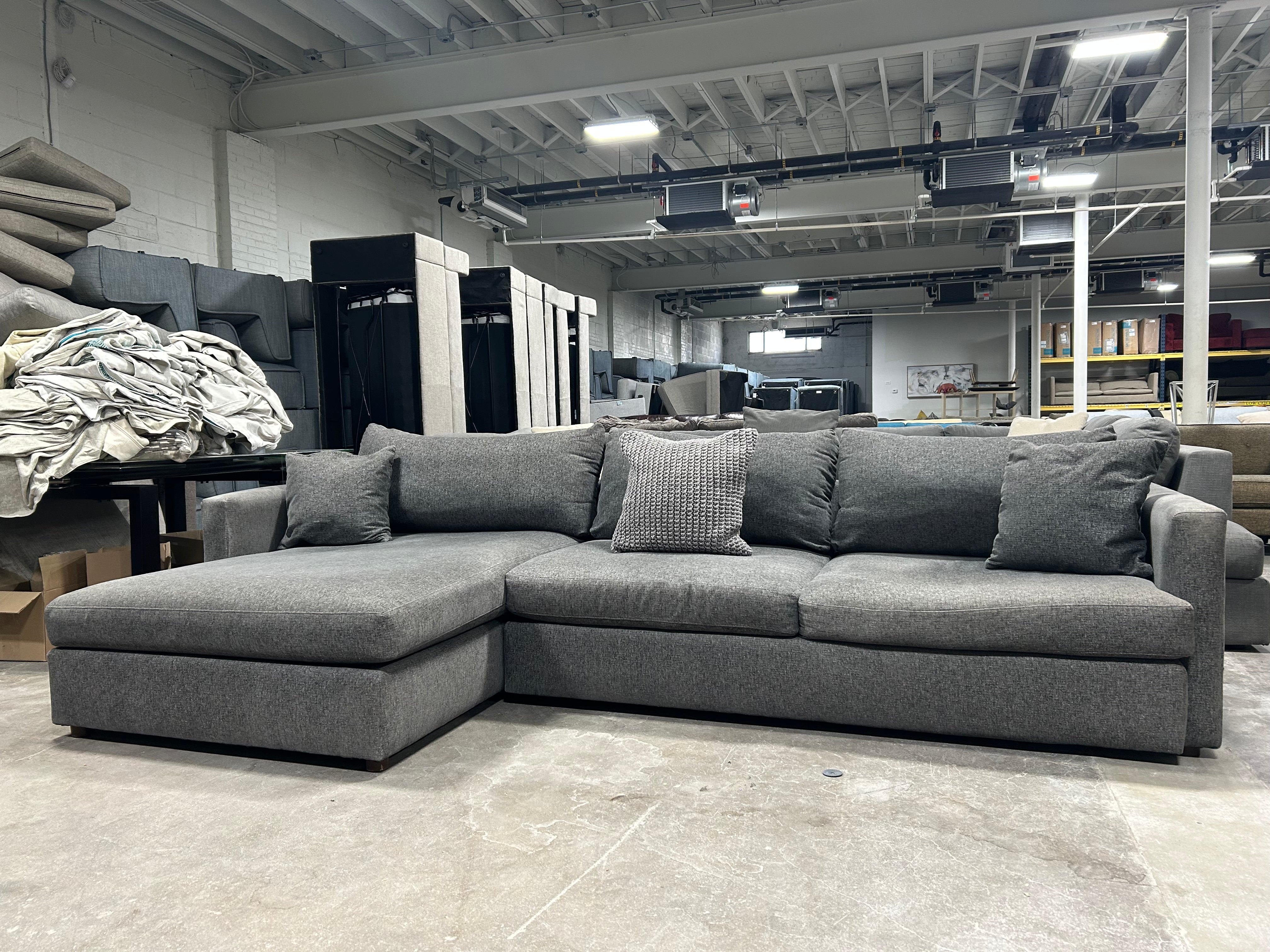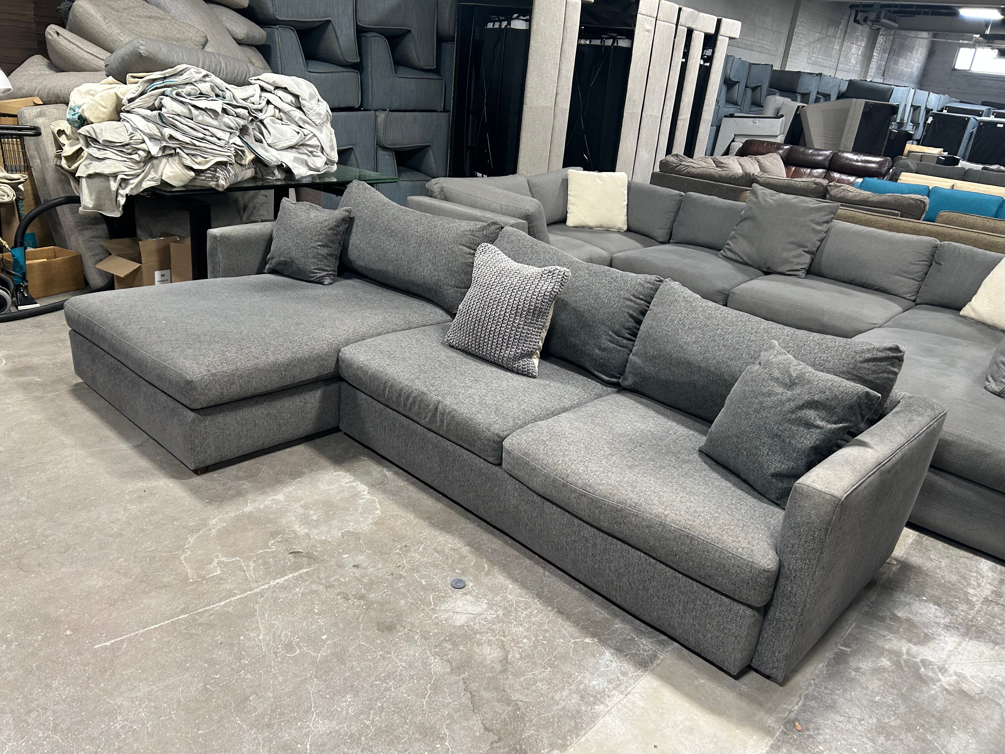 Looking for the perfect addition to your living room? Look no further than this EXCELLENT condition Bassett 2-Pc Dark Gray Allure Track Arm Chaise Sectional! The charcoal gray color adds a touch of sophistication to any space, while the generous dimensions of 120”x67”x42”x25” provide ample seating for all your family and friends. Plus, the chaise adds an extra level of comfort for those cozy nights in. Don't miss out on this 2-piece sectional, it won't last long!
