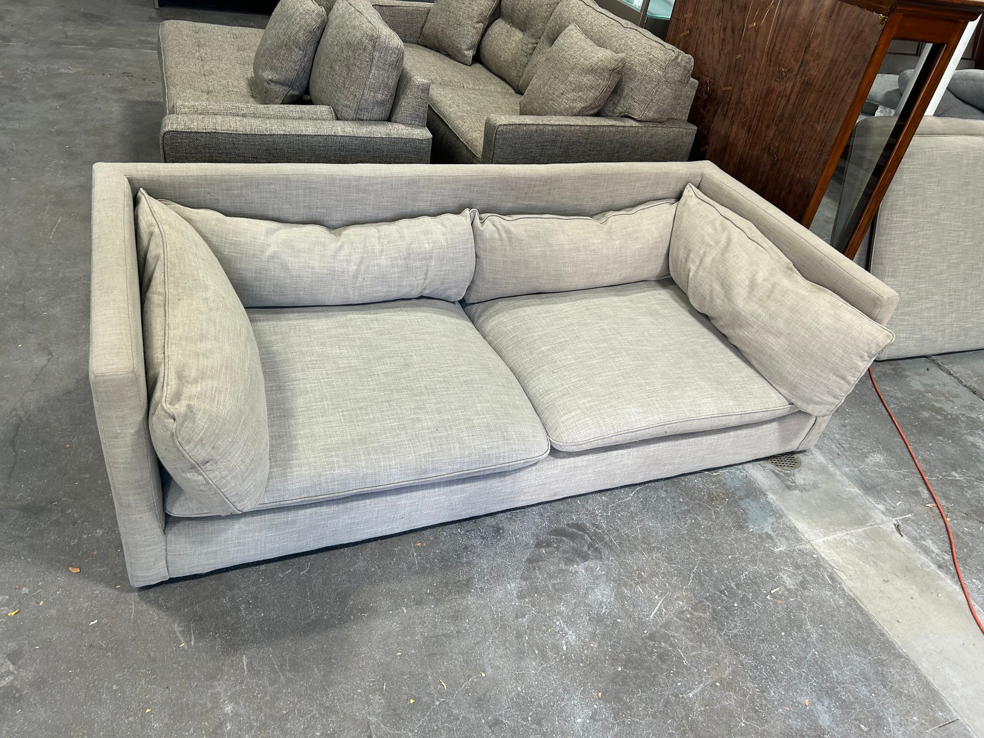 Introducing the Four Hands Contemporary Beige Cloud Sofa! This stunning piece is the perfect addition to any living room with its neutral beige color and cozy cloud-like design. Measuring 84”x39”x25”, it's the ideal size for lounging and entertaining. The plush cushions and deep seats provide maximum comfort while the sturdy frame ensures durability. Whether you're binge-watching your favorite show or hosting a movie night, this sofa has got you covered.