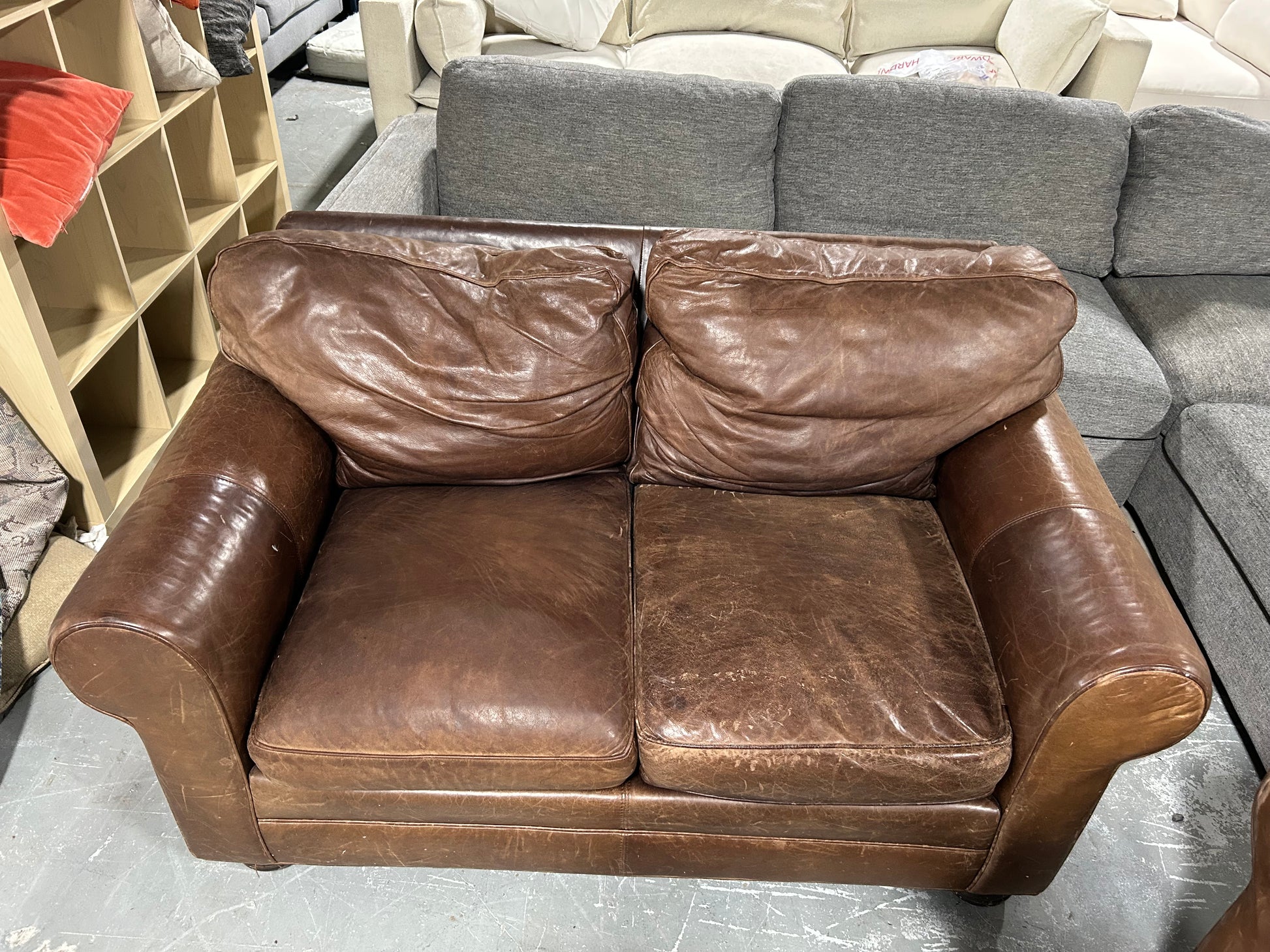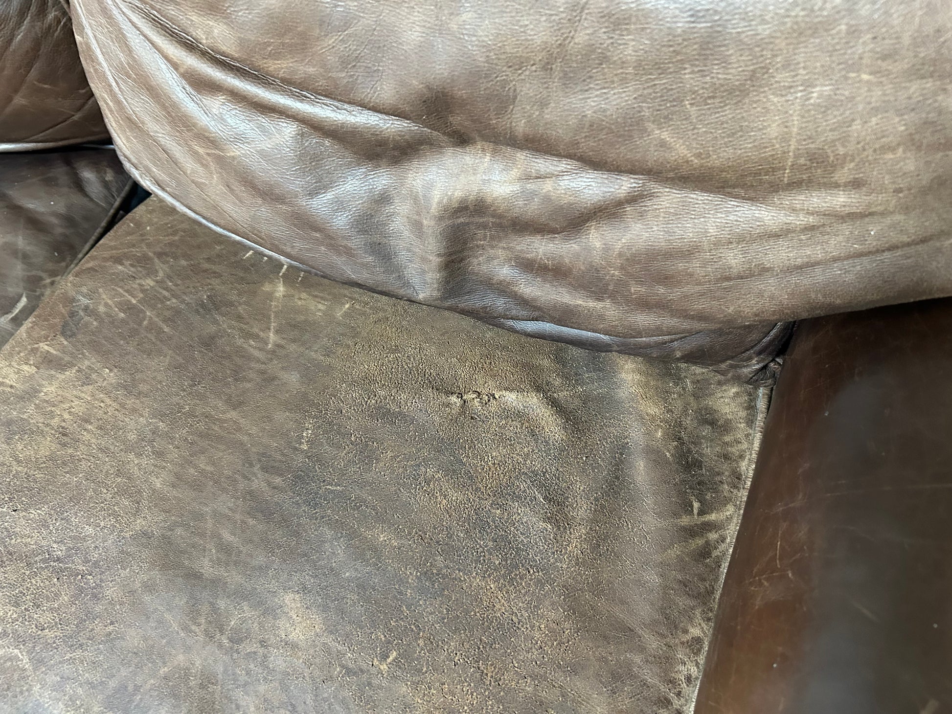 Looking for a comfortable and stylish addition to your living room? Look no further than this Cibola 2-Pc Brown Leather Sofa & Loveseat Set. Made with full grain leather, this set is not only durable but also adds a touch of elegance to any room. The rich brown color complements any decor and the dimensions of 84”x38”x32” (sofa) and 62”x38”x32” (loveseat) make it the perfect fit for any space. NOTE: a small 1” seam has been added to one seat cushion (as pictured).