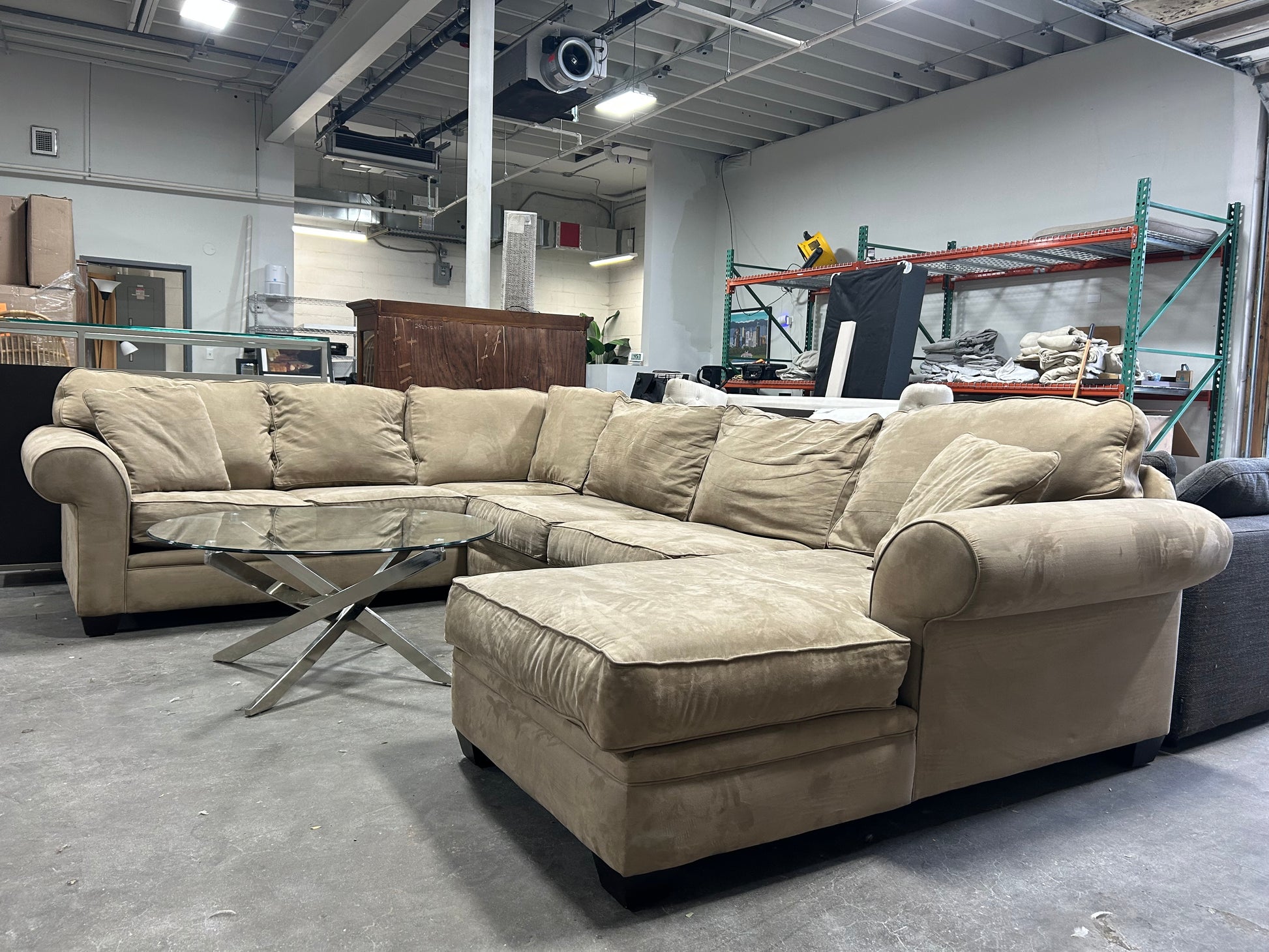 Looking for the perfect addition to your living room? Look no further than this Jonathan Louis Large 3-Pc Brown Chaise Sectional! With its beautiful light brown color and u-shaped design, this sectional is both stylish and comfortable. Made with microfiber, it's soft to the touch and easy to clean. The dimensions of 139”x98”x61”x37”x30” make it the perfect size for entertaining guests or lounging with the family. Coffee table NOT included.