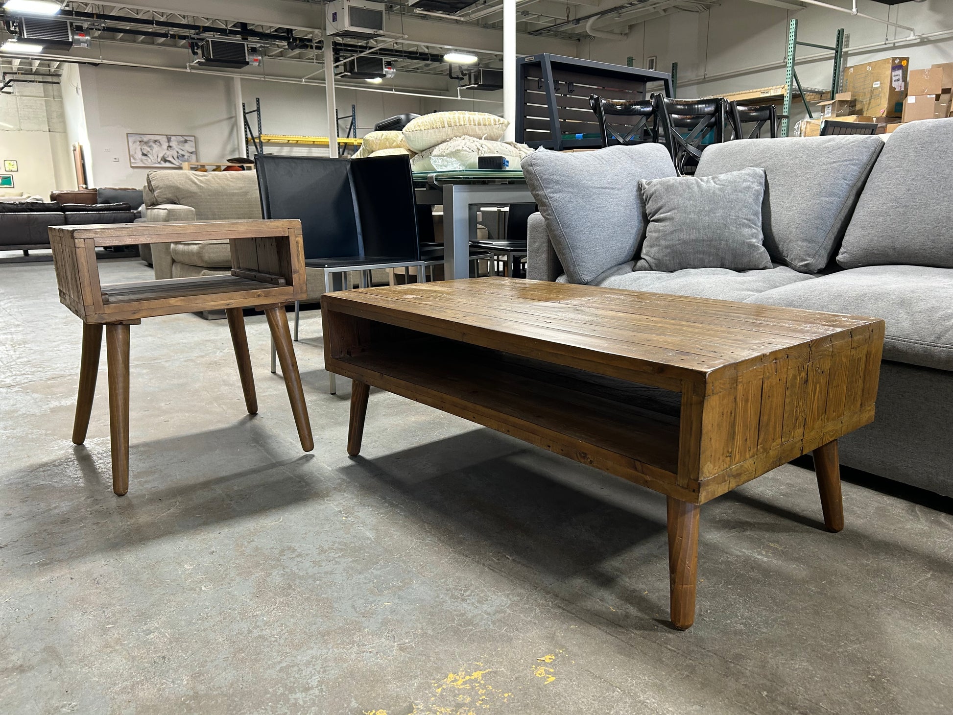 Looking for a stylish and functional addition to your living room? Look no further! This MINT condition Oak Wood MCM Coffee Table/End Table Set is the perfect choice. Crafted from high-quality oak wood, this set boasts a beautiful brown finish that will complement any decor. The coffee table measures 44”x24”x17” while the end table measures 20”x20”x24”, making them the perfect size for any space. With plenty of surface area and a sleek design, these tables are perfect for entertaining or simply relaxing at home.